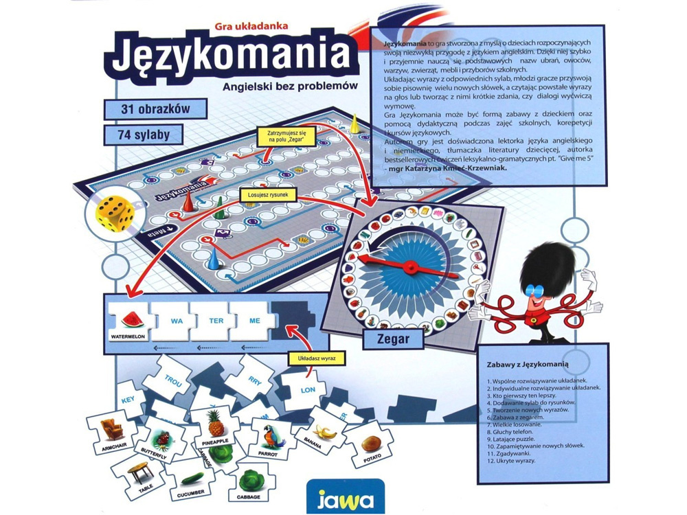 Návod obsahuje až devět herních scénářů, takže hru lze přizpůsobit věku a schopnostem účastníků. Úkolem hráče je vytvořit z rozsypaných slabik správné slovo. Skládáním hádanek se dítě naučí pravopis mnoha základních názvů ovoce, zeleniny, zvířat nebo školních pomůcek.