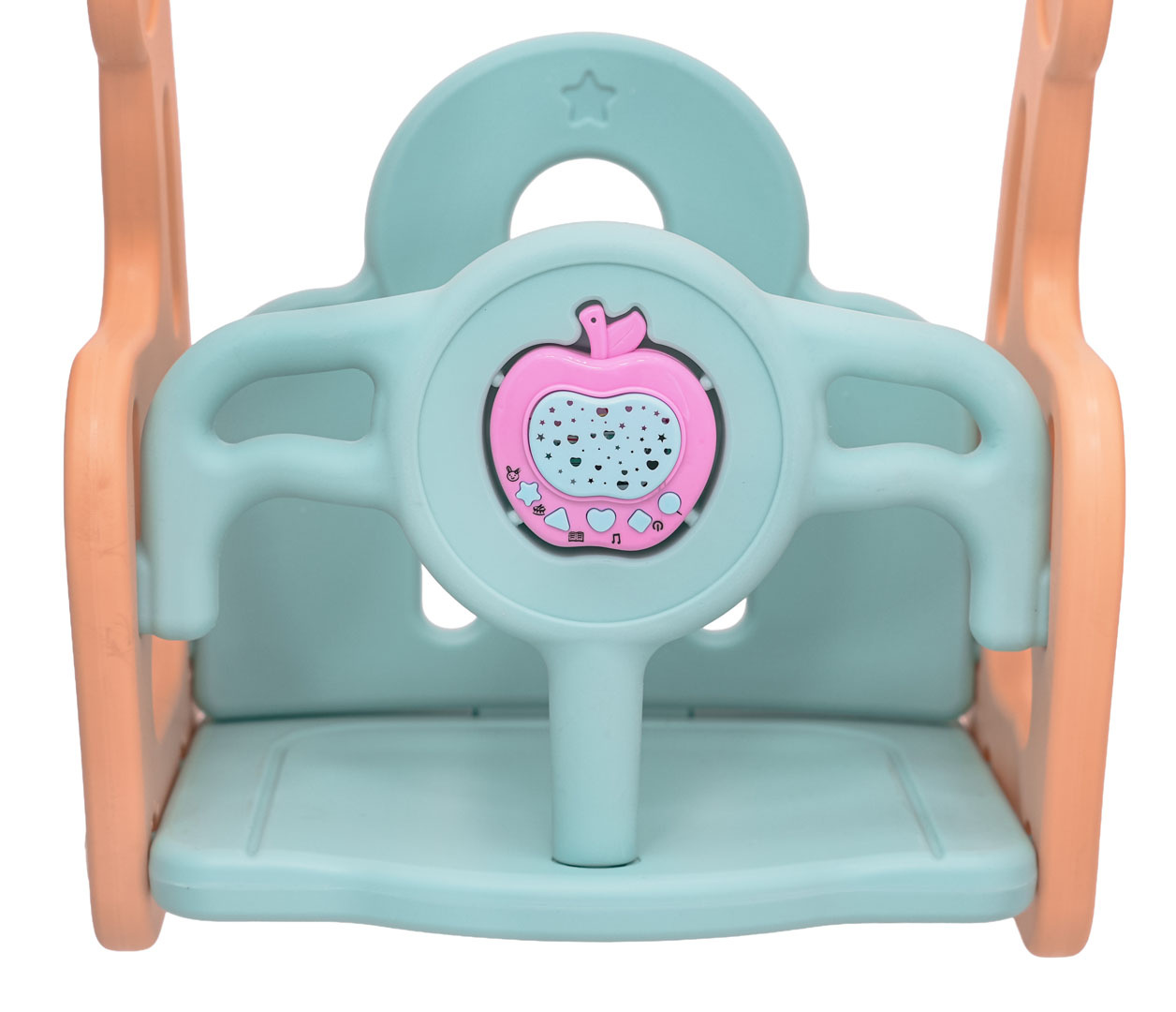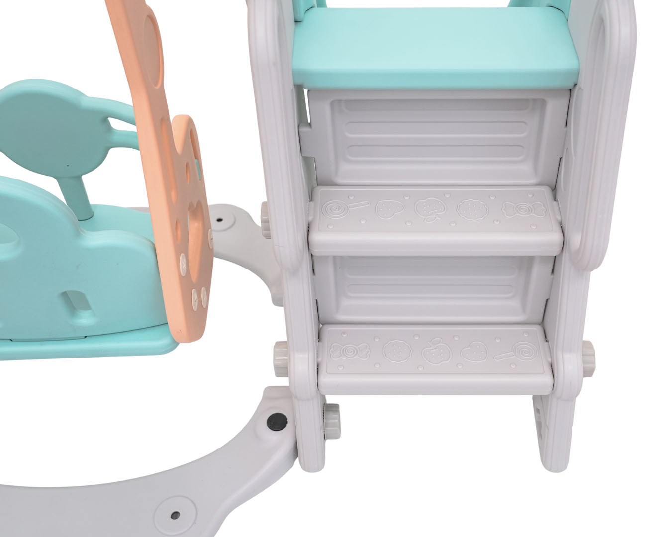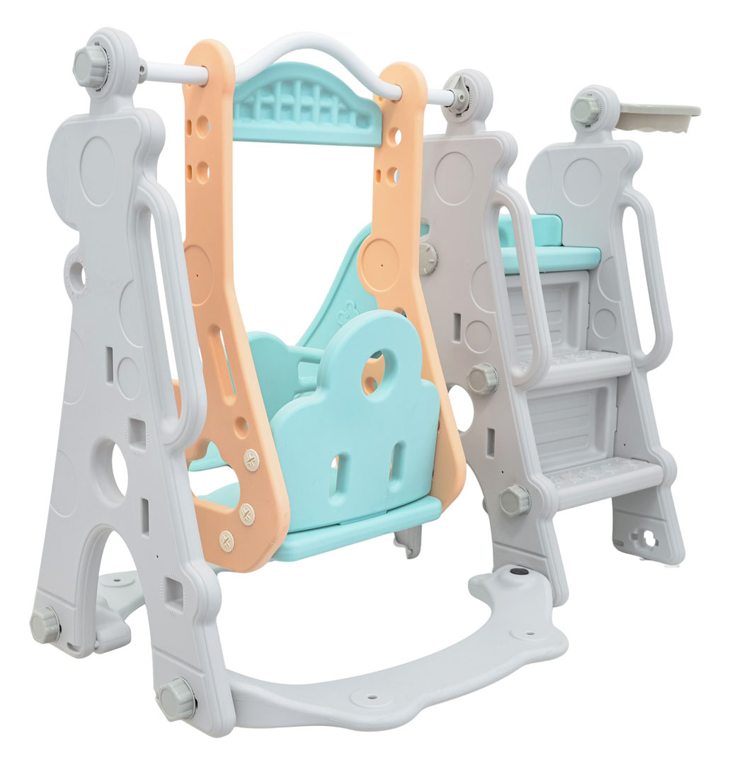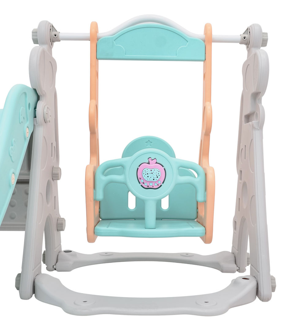 Sada 3v1, skluzavka, houpačka, basketbal pro děti od 1 roku. Všechny prvky sady jsou vyrobeny z vysoce kvalitního materiálu HDPE, který je pružnější a odolnější vůči mechanickému poškození ve srovnání s materiály používanými v jiných konstrukcích tohoto typu. Velké komponenty usnadňují montáž. Sada se ideálně hodí pro venkovní i vnitřní použití.