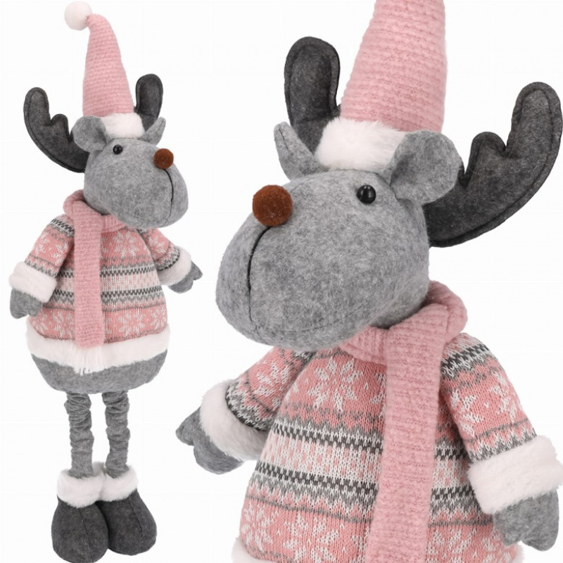 SOB Mikołaj - LOS - teleskopické nohy 90 cm Výška: 55-90 cm (celková) Šířka: 25 cm Díky zátěži stojím stabilně, mám kostkovanou vlněnou čepičku s bambulí, červenou blůzku, šálu v bílo-červené pruhy a na nožkách šedé botičky. Nejlépe se cítím na krbu, v blízkosti voňavého vánočního stromku ve svátečním obývacím pokoji a v dětském pokoji.