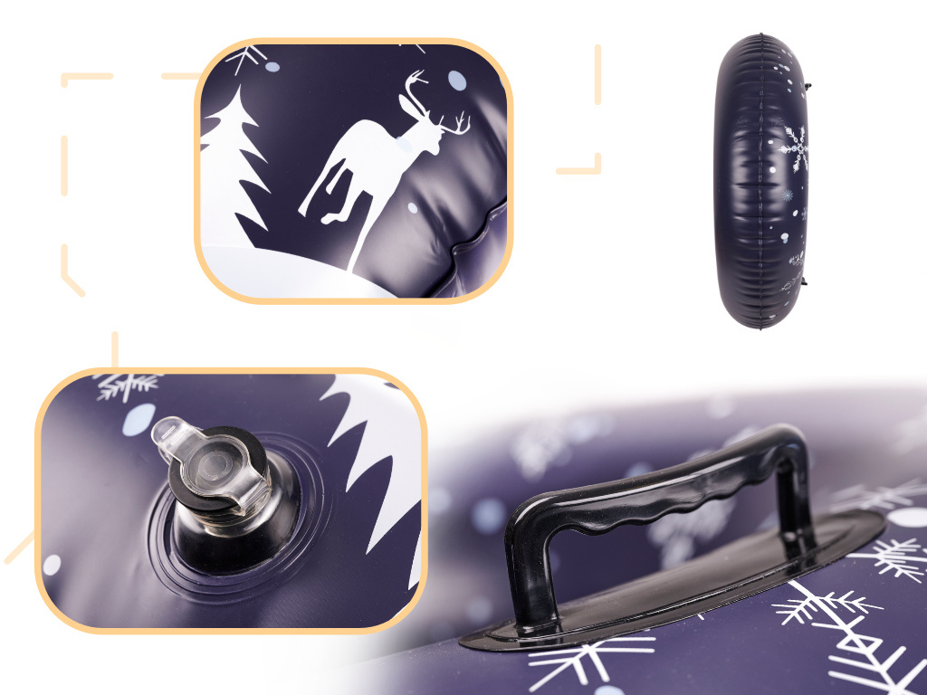 Senzační nafukovací sáně na sníh. Skvělá alternativa k tradičním sáňkám. Podpoří každé dítě, aby se vydalo na zimní sněhové řádění. Na obou stranách jezdce jsou umístěny úchyty pro držení. Maximální hmotnost: až 100 kg. Průměr: 110 cm. Rozměry. balení: 36x33x4cm.Celý popis