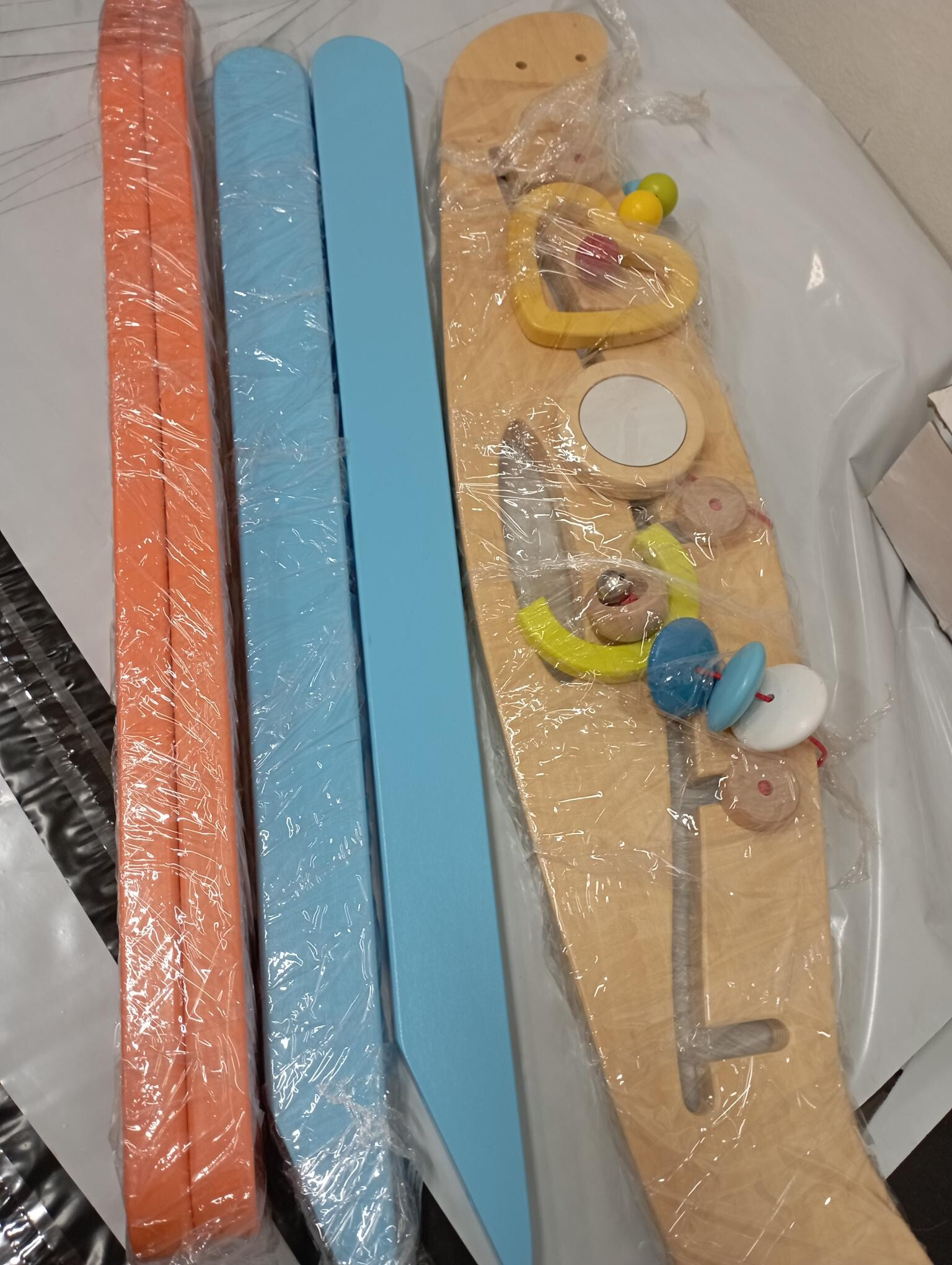 Díky této dřevěné hrací hrazdě mohou nejmenší děti trénovat své svaly. Hmatové figurky - které jsou součástí zvonek, zrcadlo nebo barevné dřevěné koule poskytnou první zkušenosti v koordinaci rukou a očí. Hrazda pomáhá s rozpoznáváním barev, probudí v dětech zvědavost a stimuluje smysly. Třem závěsným objektům můžete měnit jejich polohu. Díky integrované rukojeti se snadno přenáší. Výrobek vyžaduje montáž, dodáváno s obrázkovým návodem k sestavení. Hlavní vlastnosti: multisenzorická hračka, stimuluje smyslybarevný designtrénuje koordinaci ruka-okoinspiruje ke kreativní hře