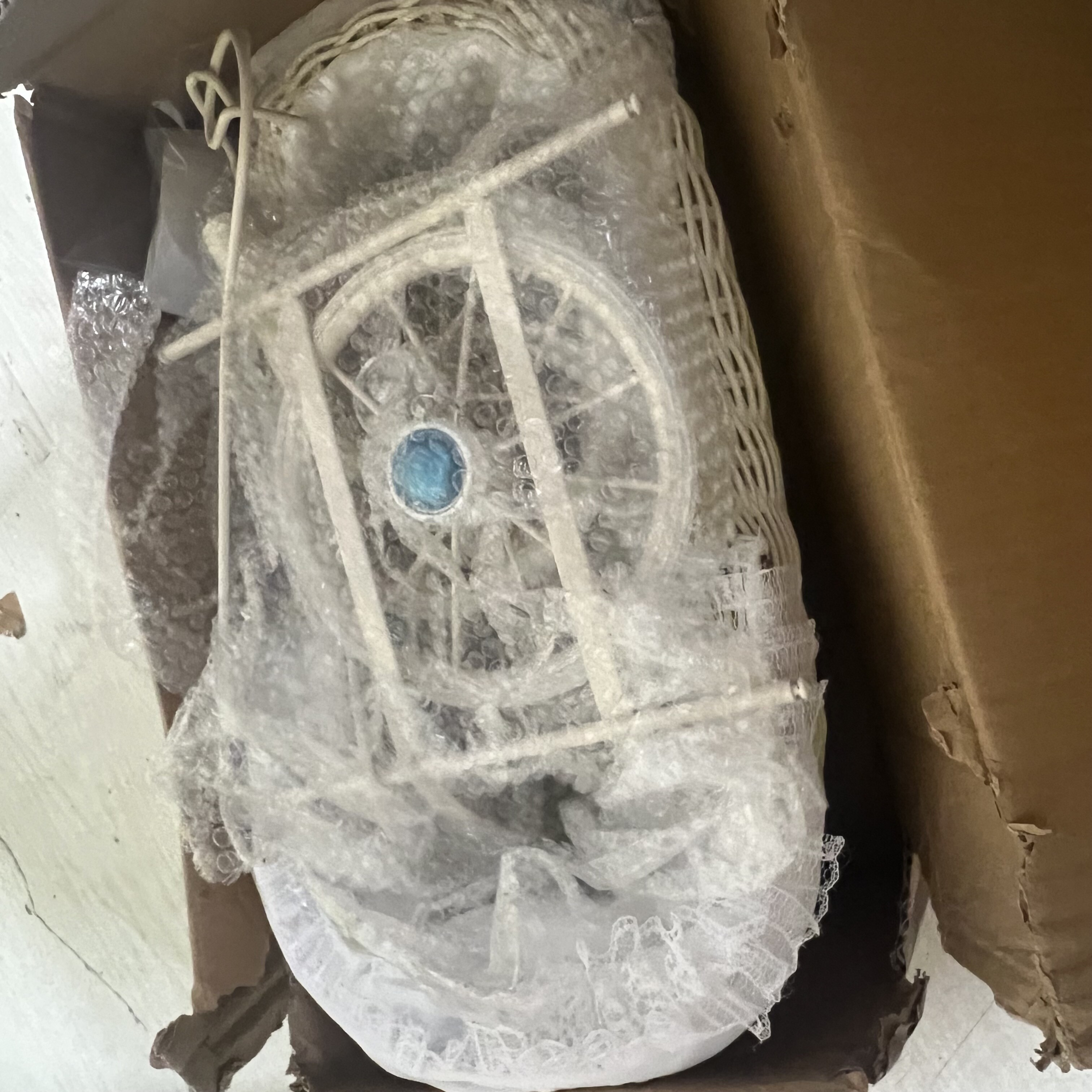 Tento bílý proutěný kočárek na kovovém rámu je současně stylovou hračkou a kouzelnou dekorací. Krásná kola s drátěným výpletem potažená gumou zaručují tichou jízdu. Stříška z jemného textilu zdobena bílou krajkou a drobnými výšivkami se dá sklápět. Výrobek vyžaduje montáž, dodáváno s obrázkovým návodem k sestavení.Hlavní vlastnosti: pogumovaná kola - tichá jízdasklápěcí stříška atraktivní provedení z dřevěného proutí.