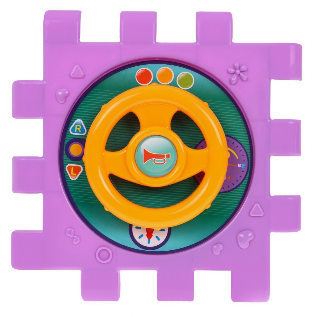 3. Fialová stěna s volantem (otáčení volantem a doprovodné zvuky - trénink sluchu a rukou).
