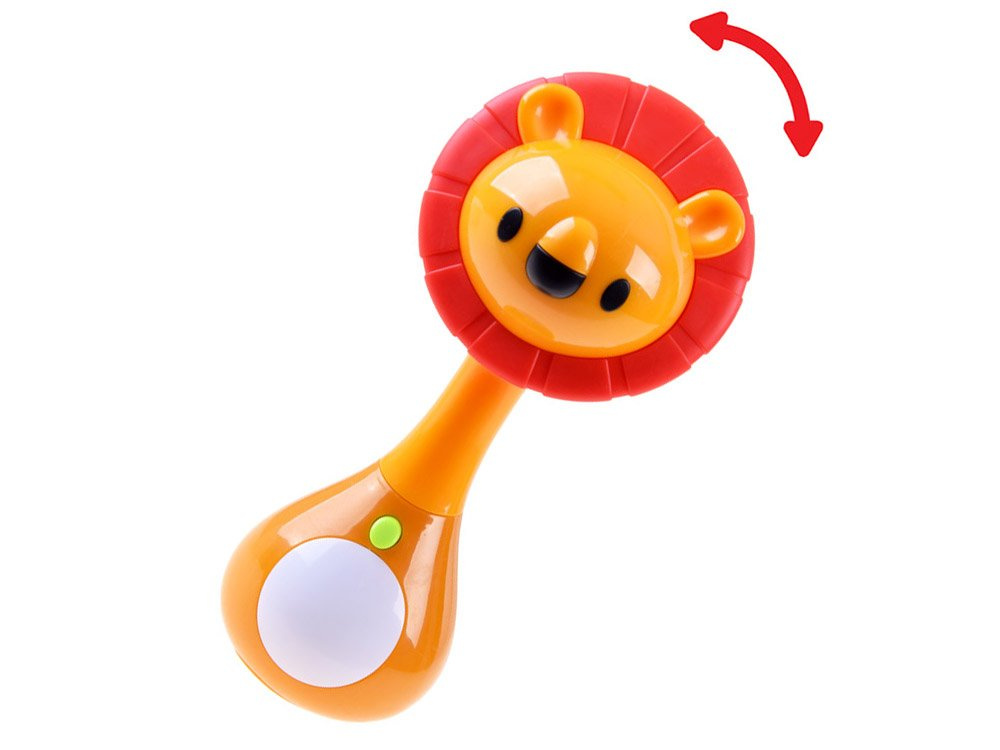 hračka znovu zahraje melodii, tentokrát s postupnými tóny písně, které se přehrávají při zatřesení hračkou. I zde chrastítko svítí.