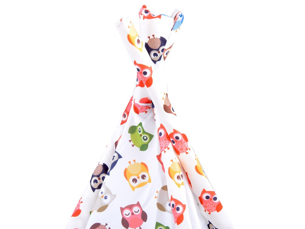 Stan ve stylu Tipi s designem veselých soviček jistě potěší každé dítě. Děti rády skrývají tajemství, tajnosti a takový stan bude ideálním místem, kam si mohou schovat nebo uložit své poklady. Stan na hraní v pokoji nebo na zahradě je vyroben ze snadno omyvatelného materiálu a trubky jsou plastové. Stan lze rozložit na jakémkoli rovném místě, bude vhodný i na hraní v pokoji s medvídky, panenkami, autíčky a skvěle se bude vyjímat i na zahradě. Stan je opatřen stahovacími páskami, které spojují jeho strany, takže je umožněn volný vstup a výstup. Velmi potřebné je také okénko, kterým se můžete podívat ven, zda se do stanu nevkrádá někdo nezvaný.