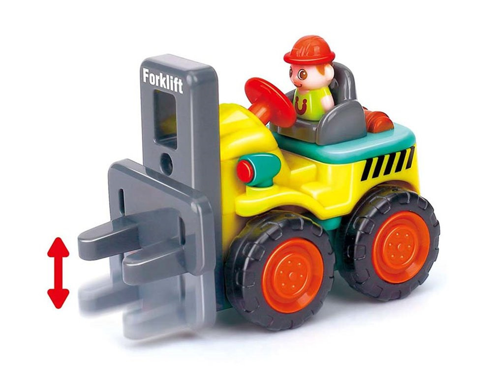 Stavební hrací auto: bagr, vysokozdvižný vozík, válec, buldozer, míchačka na beton nebo sklápěčka. Plastové autíčko s pohyblivými částmi se hodí pro jakoukoli hru.