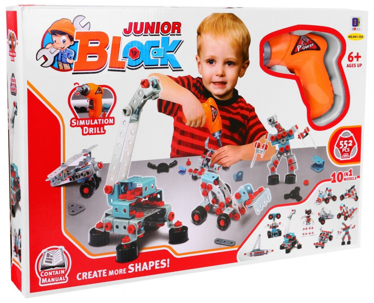 Představená sada je skutečnou výzvou - každé dítě může postavit celkem 10 různých vozidel a staveb a poté si s postavenou hračkou hrát.