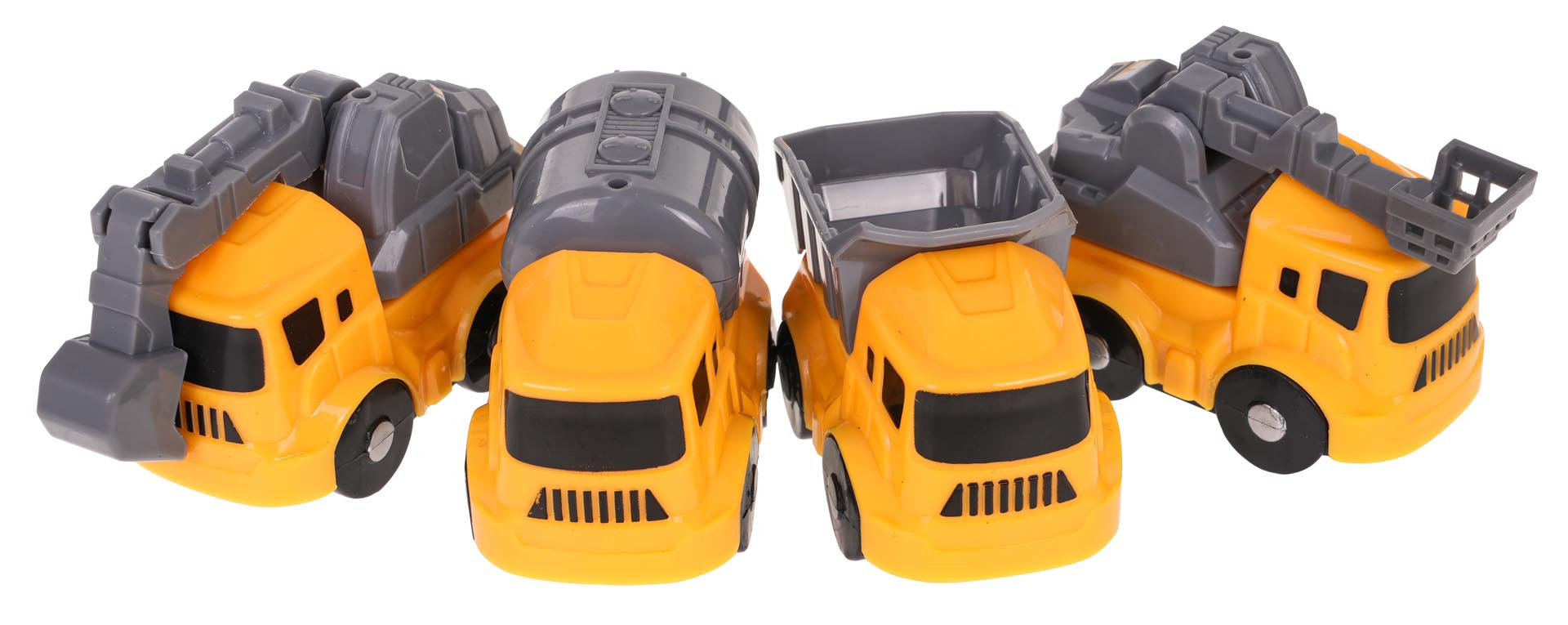 - 4 stavební vozidla: bagr, auto s výsuvným ramenem, sklápěčka, cisterna,