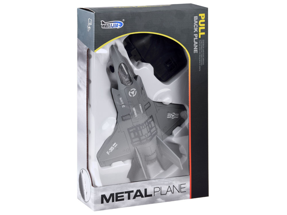 Tento model bojového letounu jistě potěší každého malého fanouška letectví a militaria. Stíhačka byla vyrobena z vysoce kvalitních komponentů s důrazem na detail. Tělo letadla je vyrobeno převážně z kovu, což zajišťuje odolnost a pevnost hračky. F-35 má pohonný systém pull-back - to znamená, že když hračku zatáhnete dozadu, pojede dopředu. Přitlačením letadla k zemi se aktivuje zvuk motorů a střelba, letecká bitva a osvětlení v kokpitu.