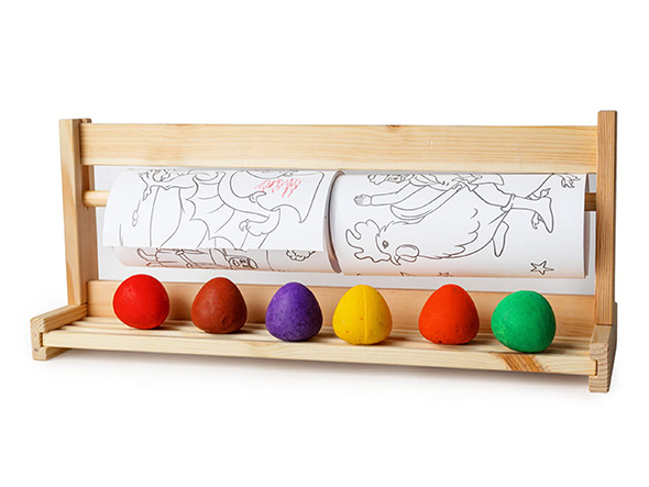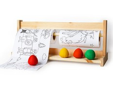 Stojan na role o délce 48 cm je vyroben ze dřeva a umožňuje umístit dvě tematické omalovánky tak, aby se daly snadno rozbalit. S tímto řešením není obtížné udržovat pořádek. Stojan pomáhá zajistit, aby role omalovánek nebyla náchylná k poškození (pomačkání, roztržení, zaplavení). Stojan je vybaven funkční poličkou na pastelky a nastavitelnou příčkou, takže zajímavý motiv lze snadno odtrhnout bez zubatých hran. Stojan je skvělou dekorací na stůl! Velký stojan umožňuje také montáž čistého kreslicího papíru o šířce 43-44 cm, takže funguje jako velký list.