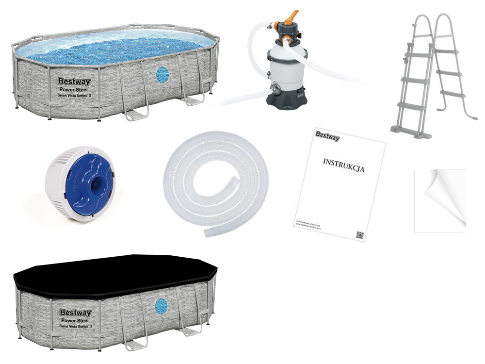 - díky oválnému tvaru je bazén kompaktnější, vyžaduje méně místa k sestavení a méně vody k naplnění.