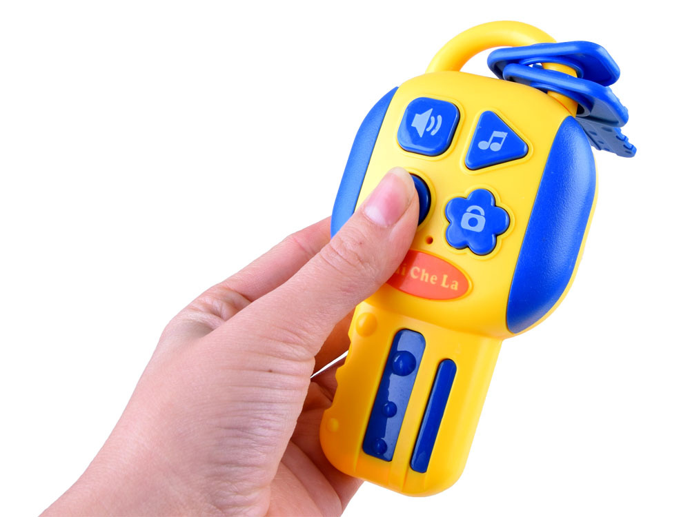 - modrý knoflík - hračka start, dítě uslyší zvuk startujícího auta a jede se!