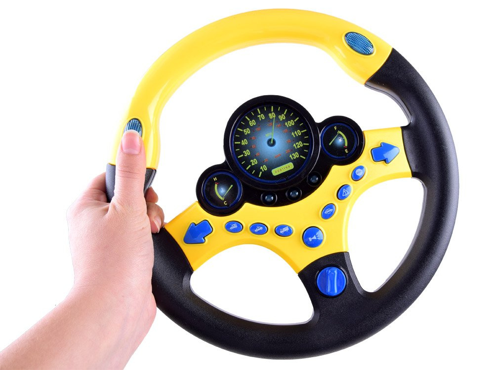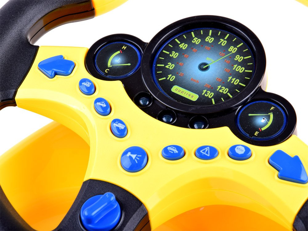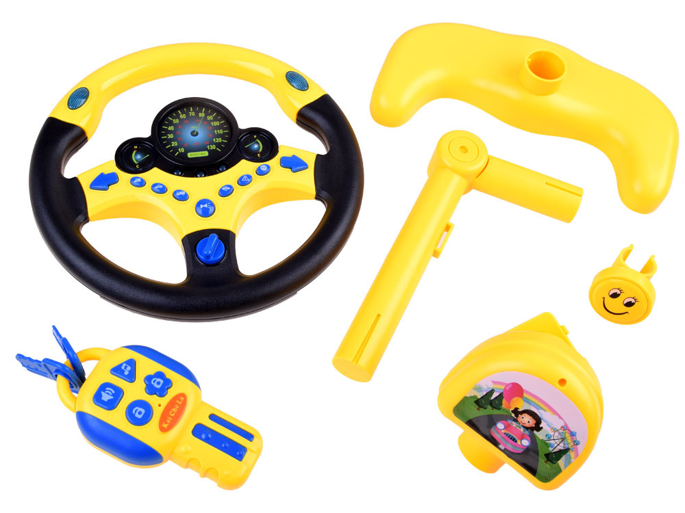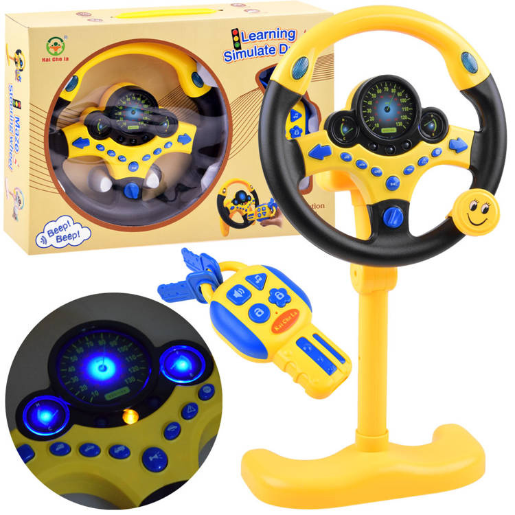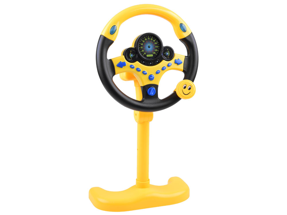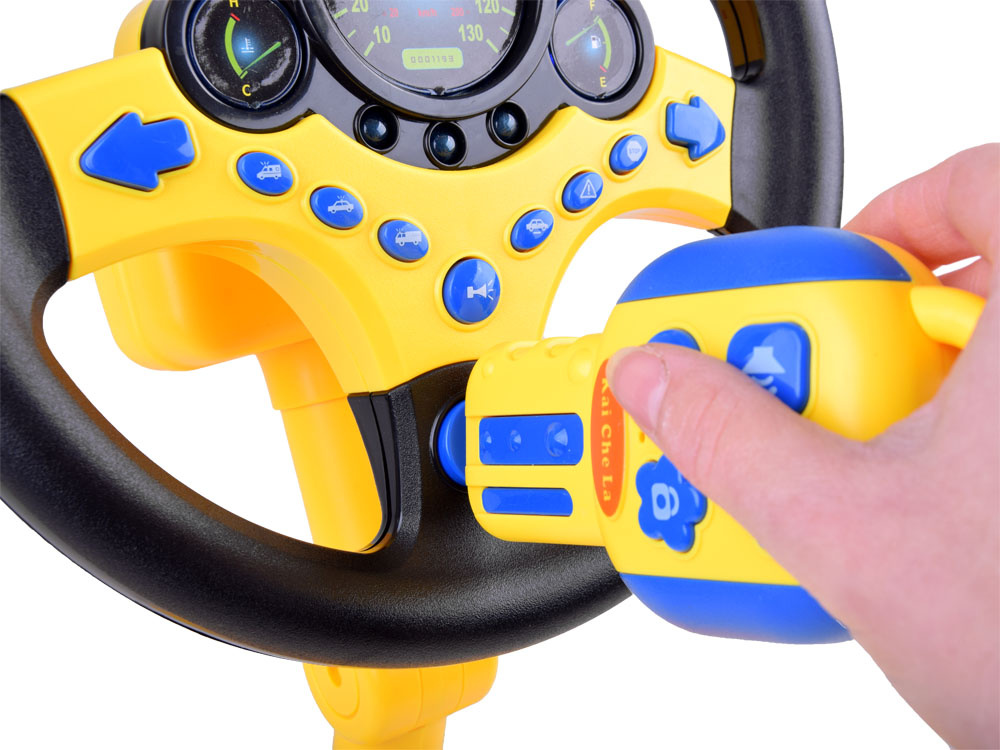 Interaktivní volant pro malého řidiče je vysoce propracovaná sada pro zábavu při řízení. Sada se skládá z volantu, stojanu a dálkového ovládání s klíči.
