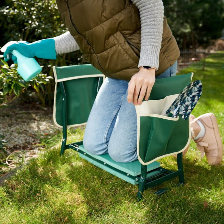 Funkční klekačka se hodí při zemních pracích, jako je pletí nebo přesazování rostlin. Otočením klekačky ji lze velmi snadno přeměnit na stoličku, která usnadní sběr ovoce, nebo dokonce poslouží jako náhrada rybářské židle. držák nářadí 3v1 Kneeler Stool