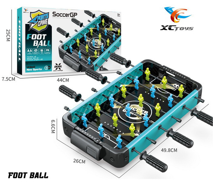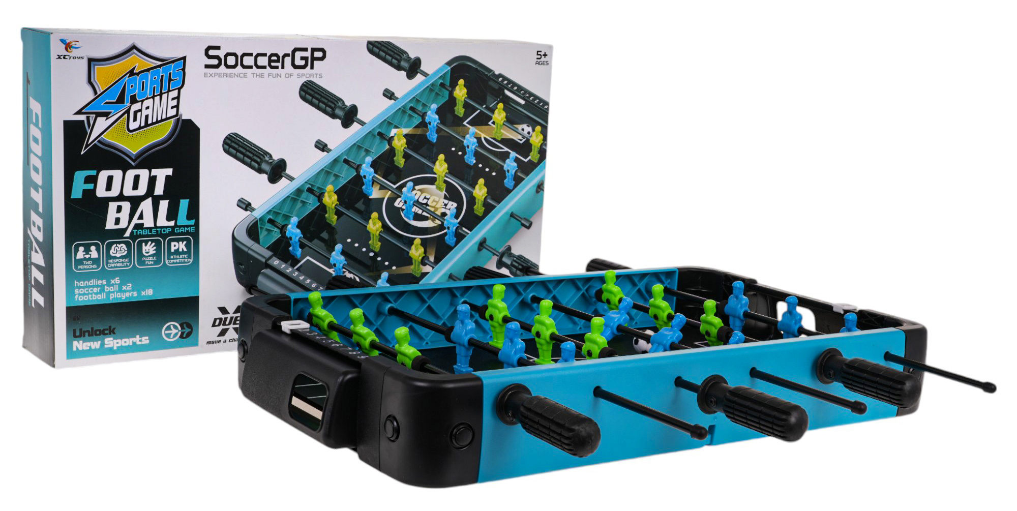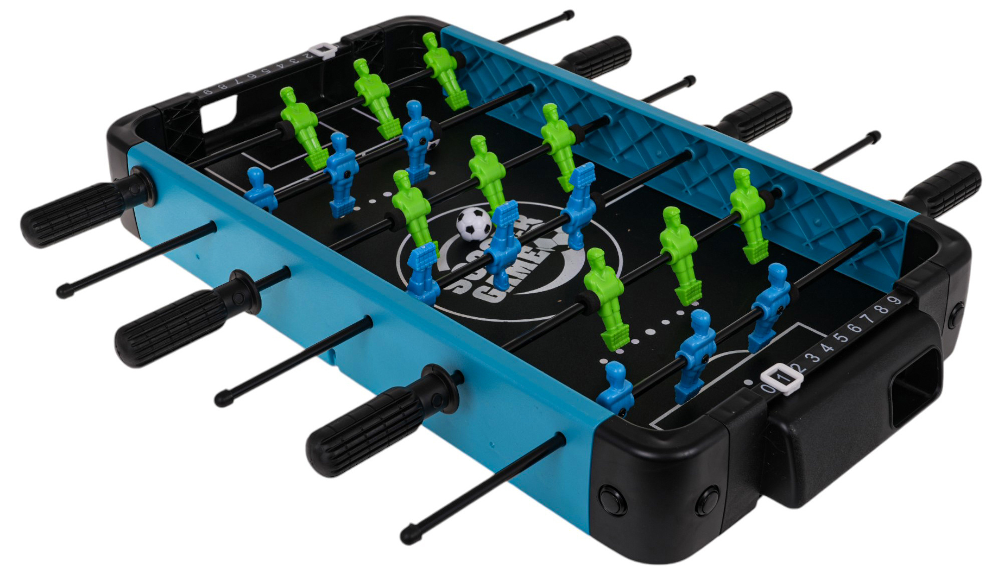 Stolní verze populární hry určené pro dvě osoby pro děti od 5 let. Stůl je lehký a kompaktní, můžete si ho vzít všude s sebou. Rukojeti se velmi snadno otáčejí, montáž je velmi jednoduchá, návod a šroubovák jsou k dispozici v balení.