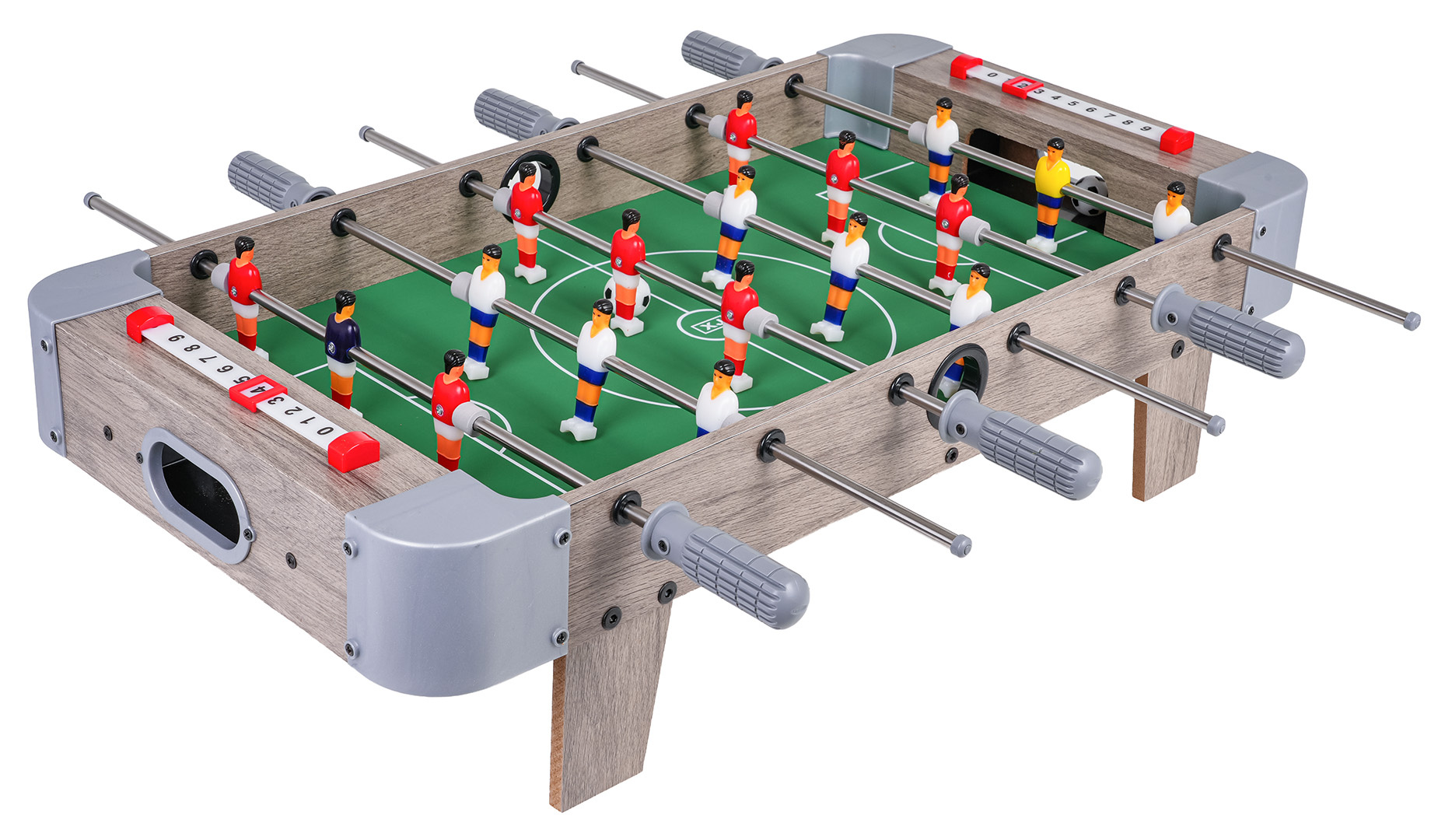 | Stůl na stolní fotbal pro děti od tří let. Stůl je vyroben z vysoce kvalitních materiálů, má lehkou, stabilní konstrukci a počítadlo bodů. Sada je snadno sestavitelná a díky svým malým rozměrům ji můžete vzít kamkoli s sebou a užívat si vzrušující hru, kdekoli jen chcete.