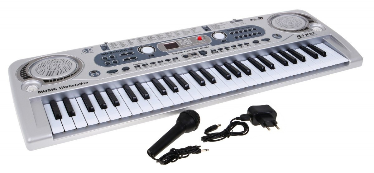 | | - tlačítko zapnutí/vypnutí, - hudební klaviatura (32 bílých kláves + 22 černých kláves), - digitální displej, - tlačítka pro aktivaci 100 tónů (např. klavír, violoncello, jazzová kytara, trubka, saxofon, flétna, hoboj...), - tlačítka aktivující 100 rytmů (např. waltz, tango, balada, disco, country, rumba...), - tlačítko demo one a demo all (10 melodií), - 5 tlačítek zvířecích zvuků (pes, žába, kachna, pták, kočka)/5 typů bubnů, - režim akordů - single (jednotlivé akordy hrané dohromady), finger (jednotlivé akordy hrané zvlášť), - tlačítka pro ovládání hlasitosti, - tlačítka pro ovládání tempa, - tlačítko start/stop, - tlačítko pro nahrávání, - tlačítko pro programování, - tlačítko PLAY, - výstup na mikrofon, - výstup na přídavný reproduktor, - USB vstup, - 2 reproduktory, - mikrofon, - napájení. |