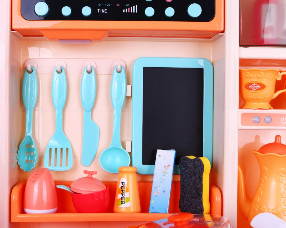 Senzační, dobře vybavená, velká multifunkční kuchyně. Kuchyňská linka má dřez s vodovodní baterií, osvětlené hořáky se zvuky vaření a smažení, jeden z hořáků má parní funkci, pohyblivé knoflíky, digestoř se světlem a hudebním panelem, otevíratelnou troubu, otevíratelnou lednici, hodiny, police a četné kuchyňské doplňky (65 prvků). Kuchyňské příslušenství zahrnuje min. vařič vajec, který "vaří" vejce a vydává přitom zvuky, a tabuli s křídou a houbou.Celý popis