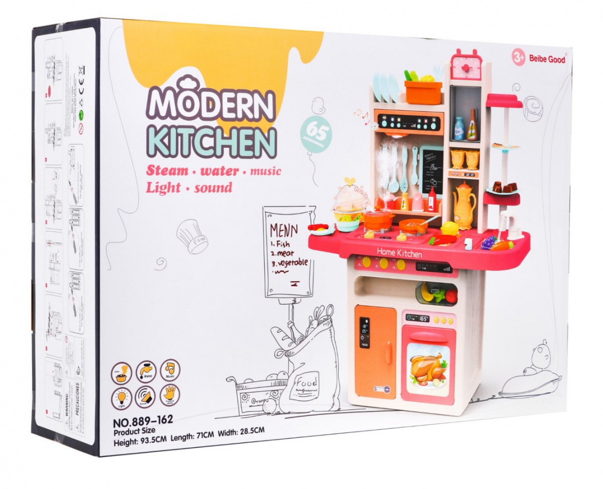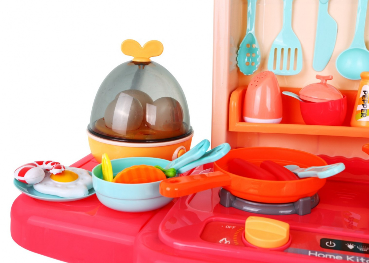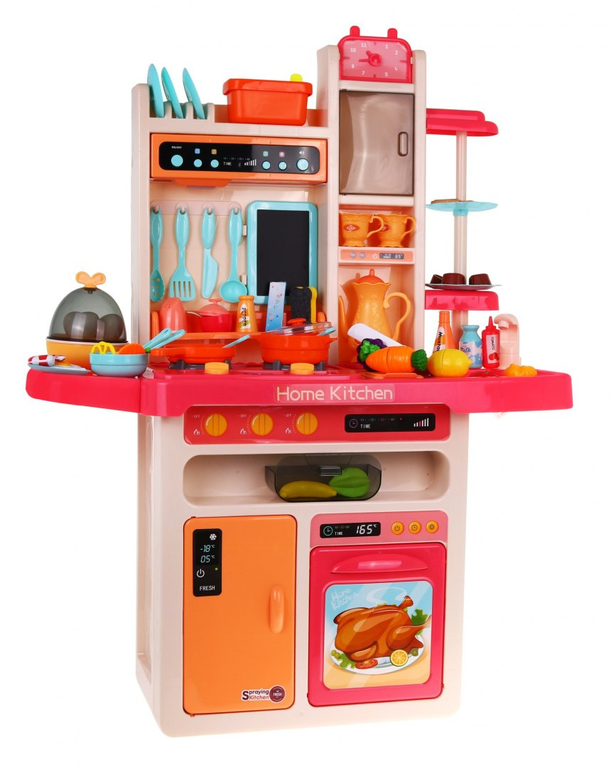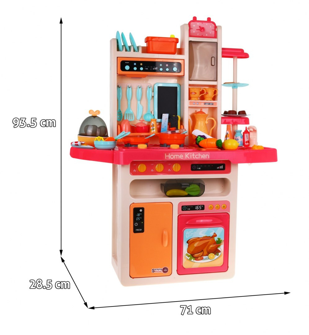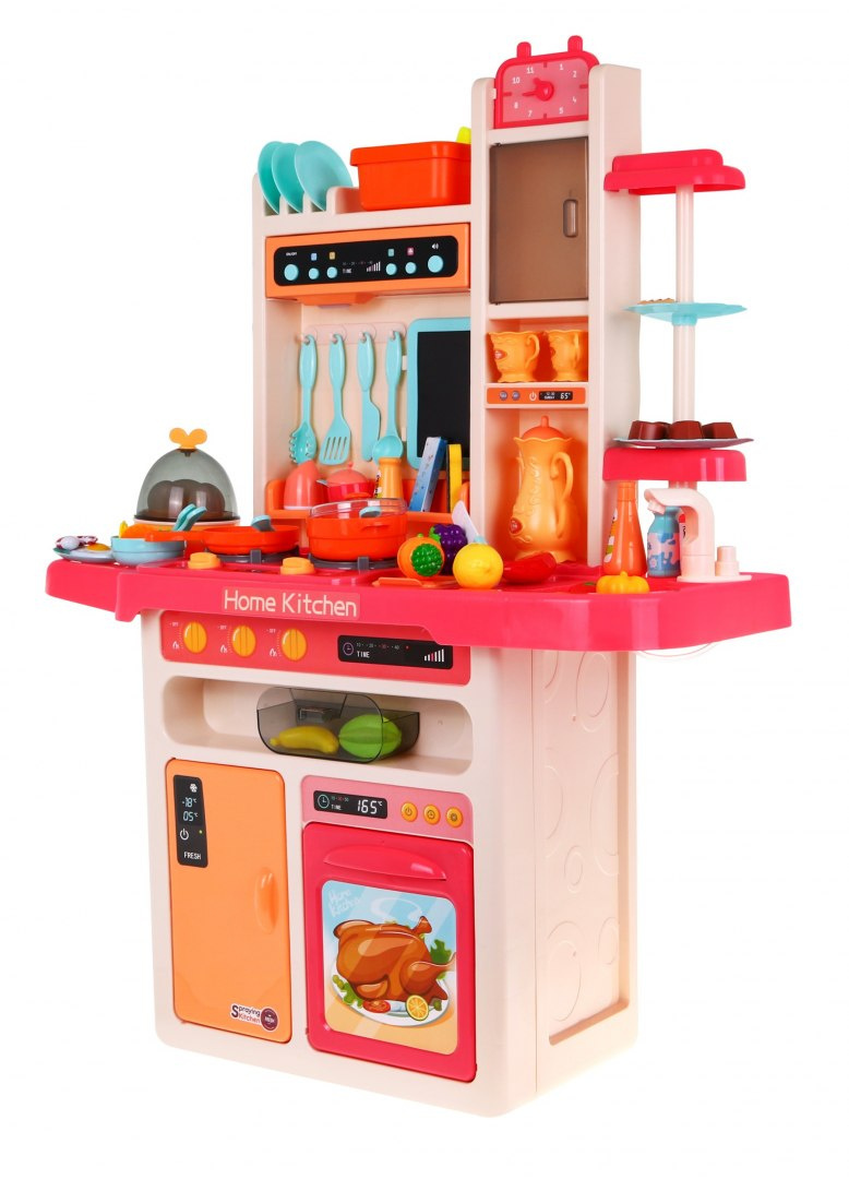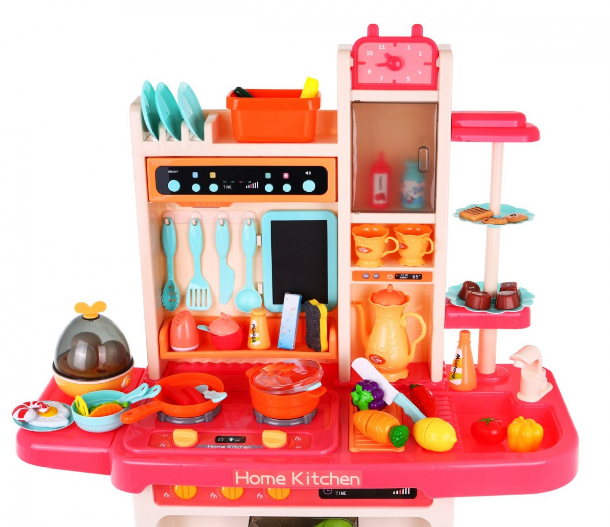 Stylová růžová kuchyně pro děti 3+ Vodovodní kohoutek + Interaktivní hořák s párou + Audio panel 65 el.