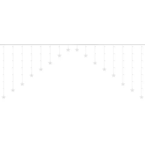 SPECIFIKACE -počet režimů: 8; typ osvětlení; VEDENÝ; barva světla: vícebarevná; barva vedení: transparentní; počet LED: 136; třída vodotěsnosti: IP44; dálkové ovládání: ano; napájení: elektrická síť; výkon: 1,2W; rozměr jedné hvězdy: 9 cm; celková délka: 535 cm; délka rampouchu: 100 cm; hmotnost: 0,388 kg; hmotnost v balení: 0,494 kg.