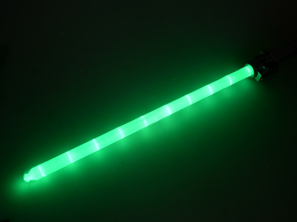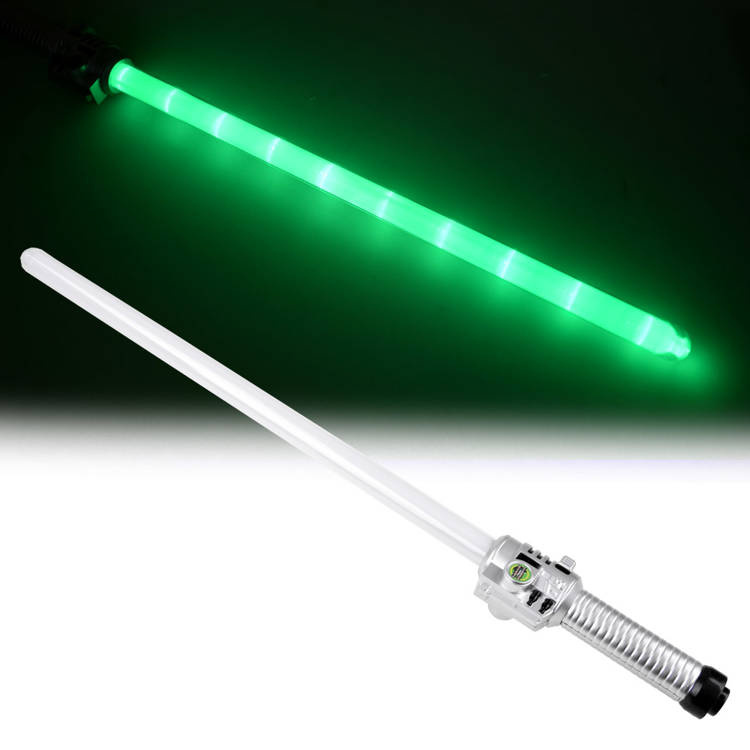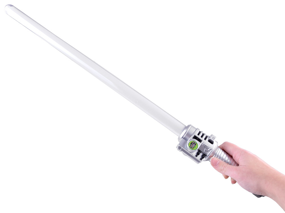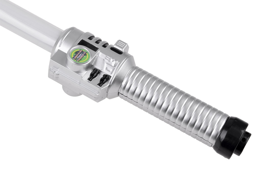 Světelný meč s modrým osvětlením a zvukovými efekty poskytne každému malému bojovníkovi či rytíři spoustu realistických soubojů. Hračka je vyrobena výhradně z plastu. Meč má stříbrnou rukojeť s knoflíkem. Po stisknutí červeného tlačítka uslyší malý bojovník zvukový efekt střelby z meče a vizuální efekt zeleného osvětlení.