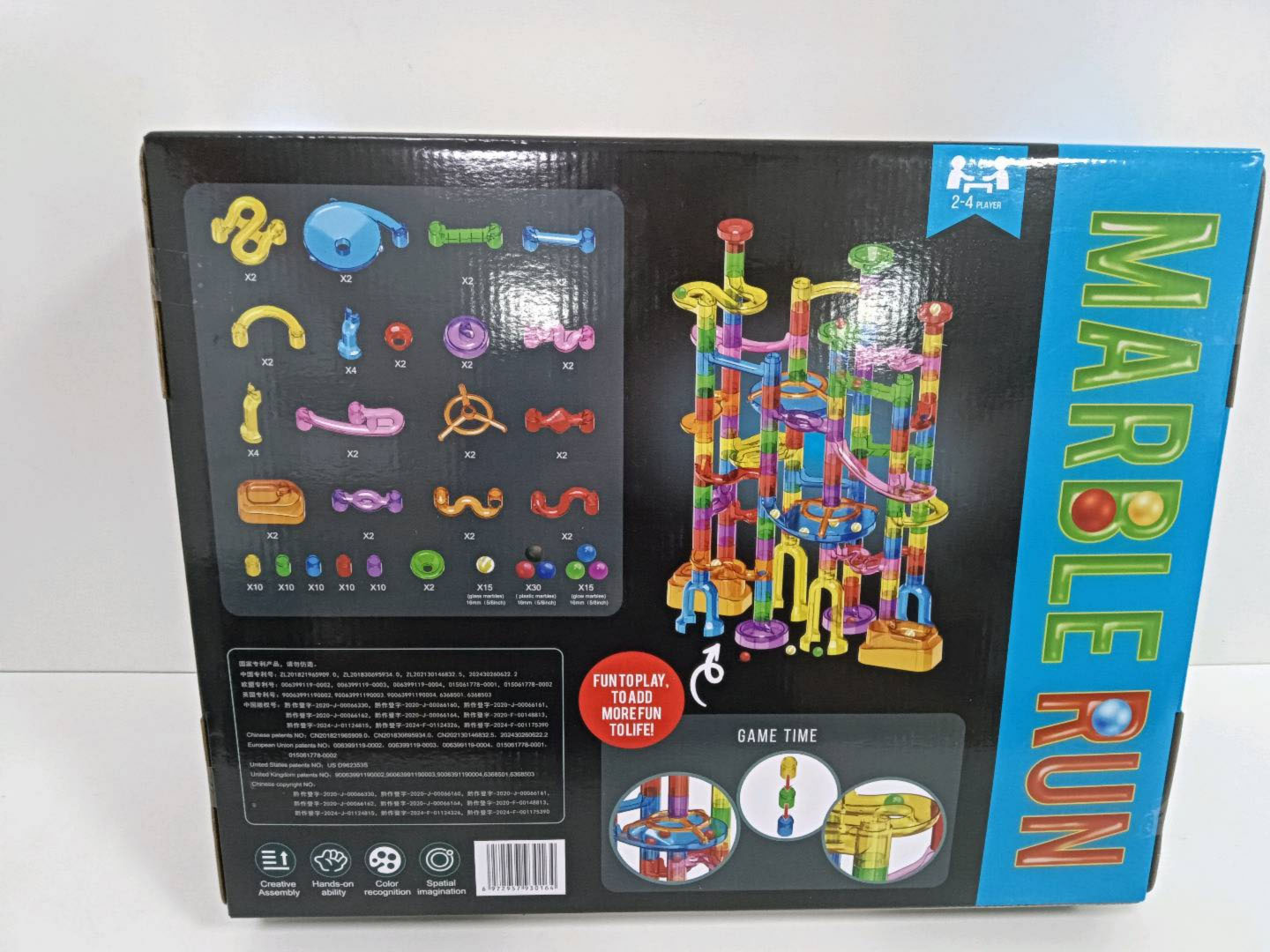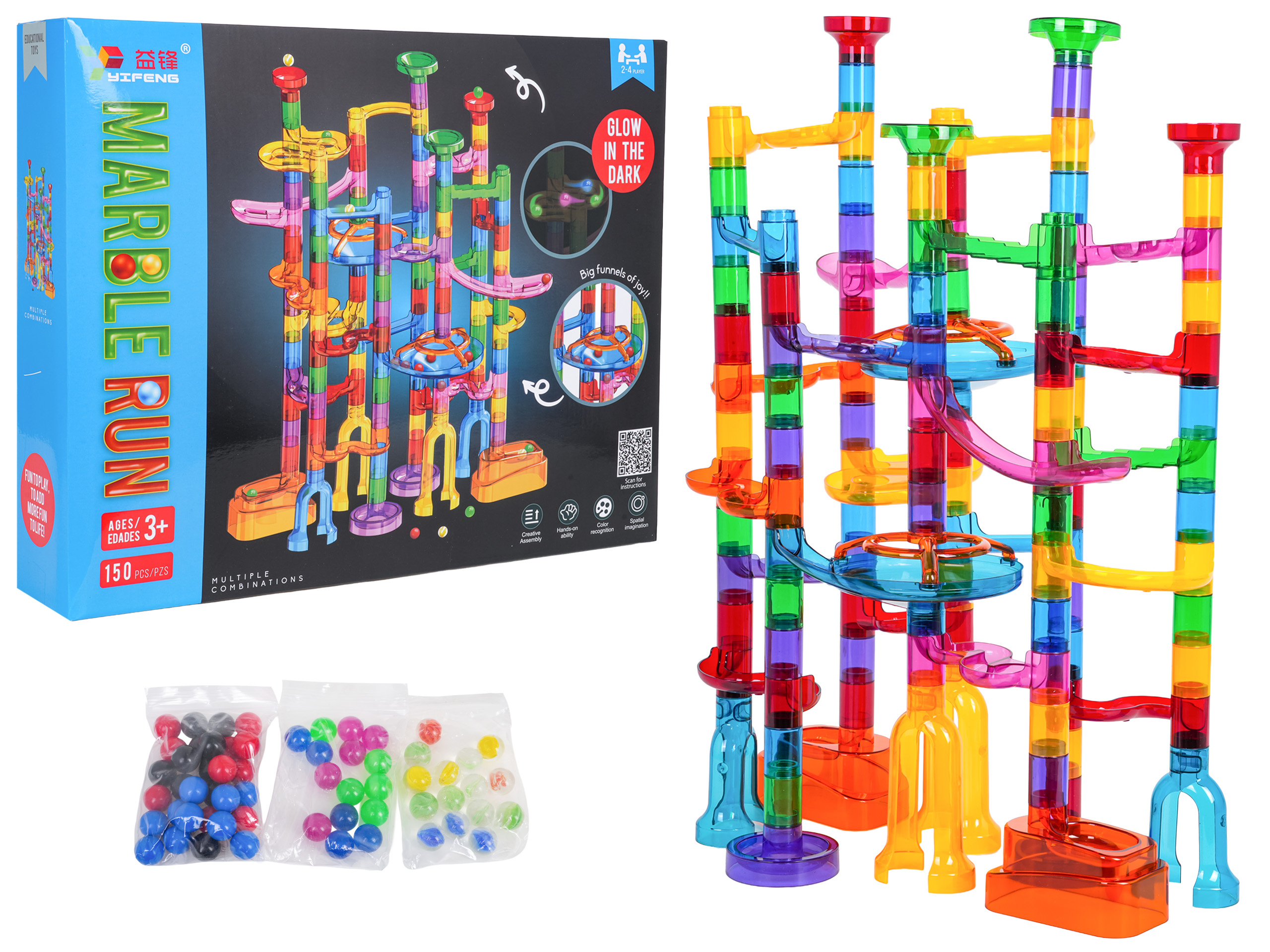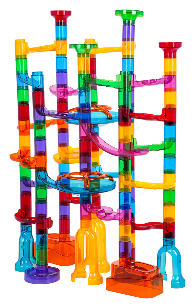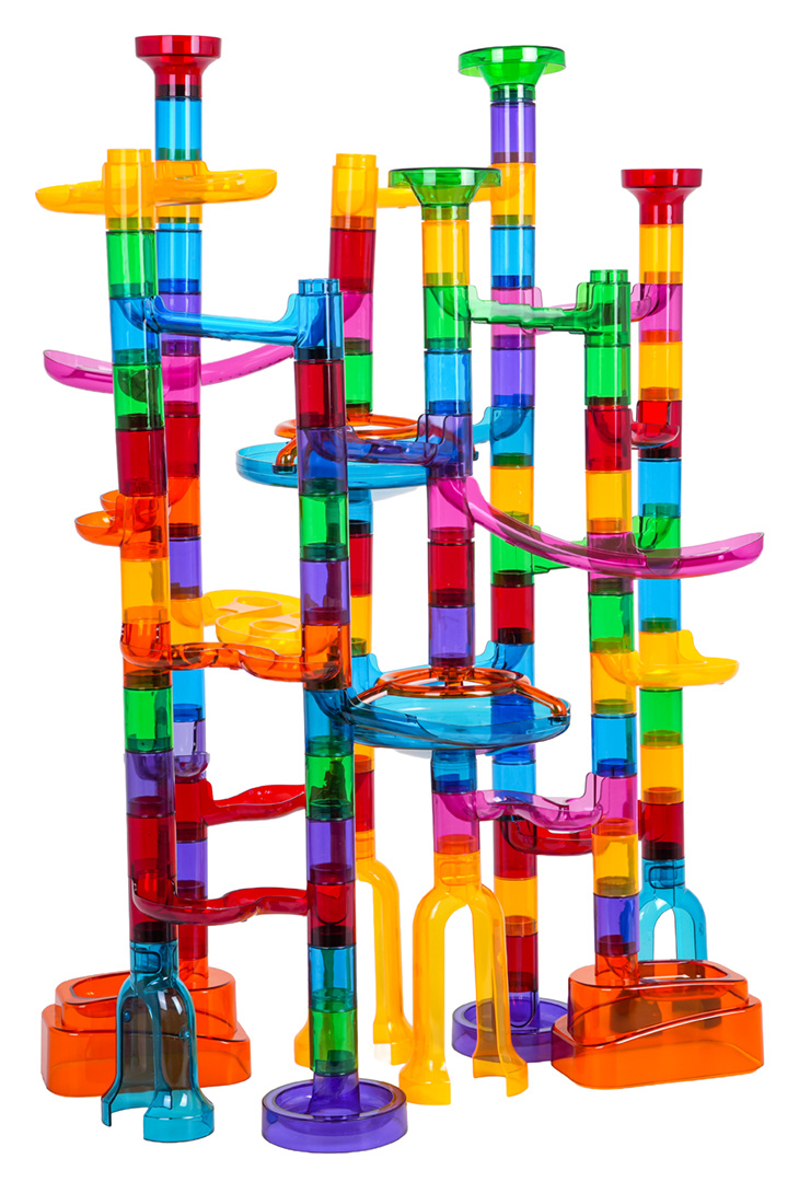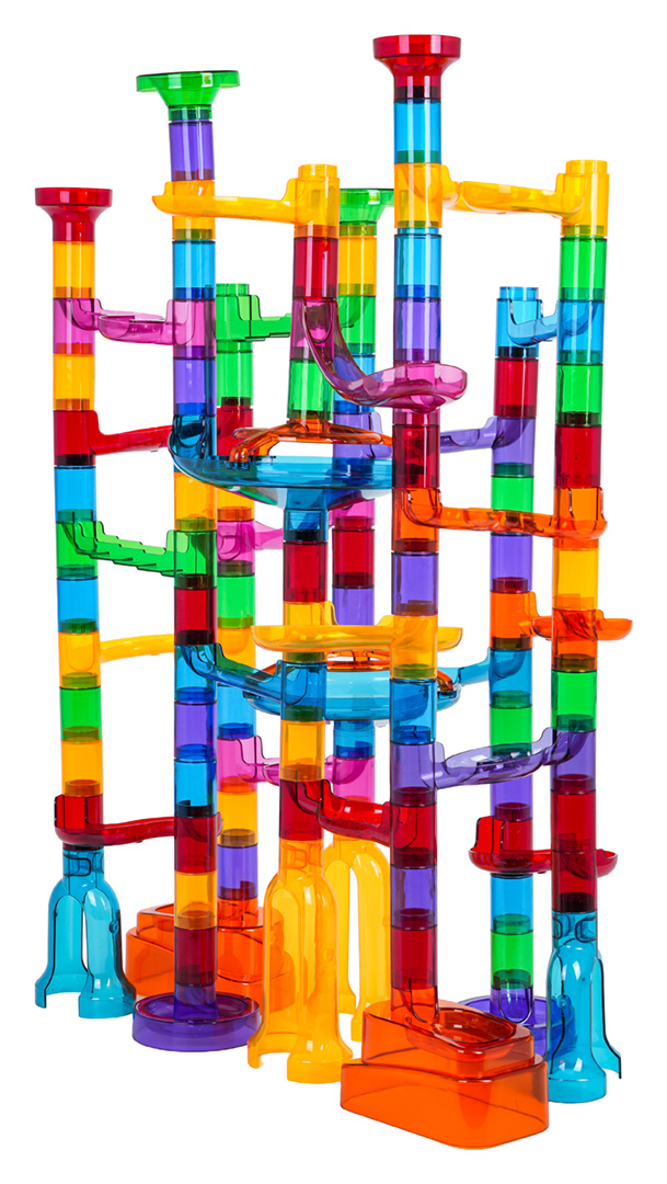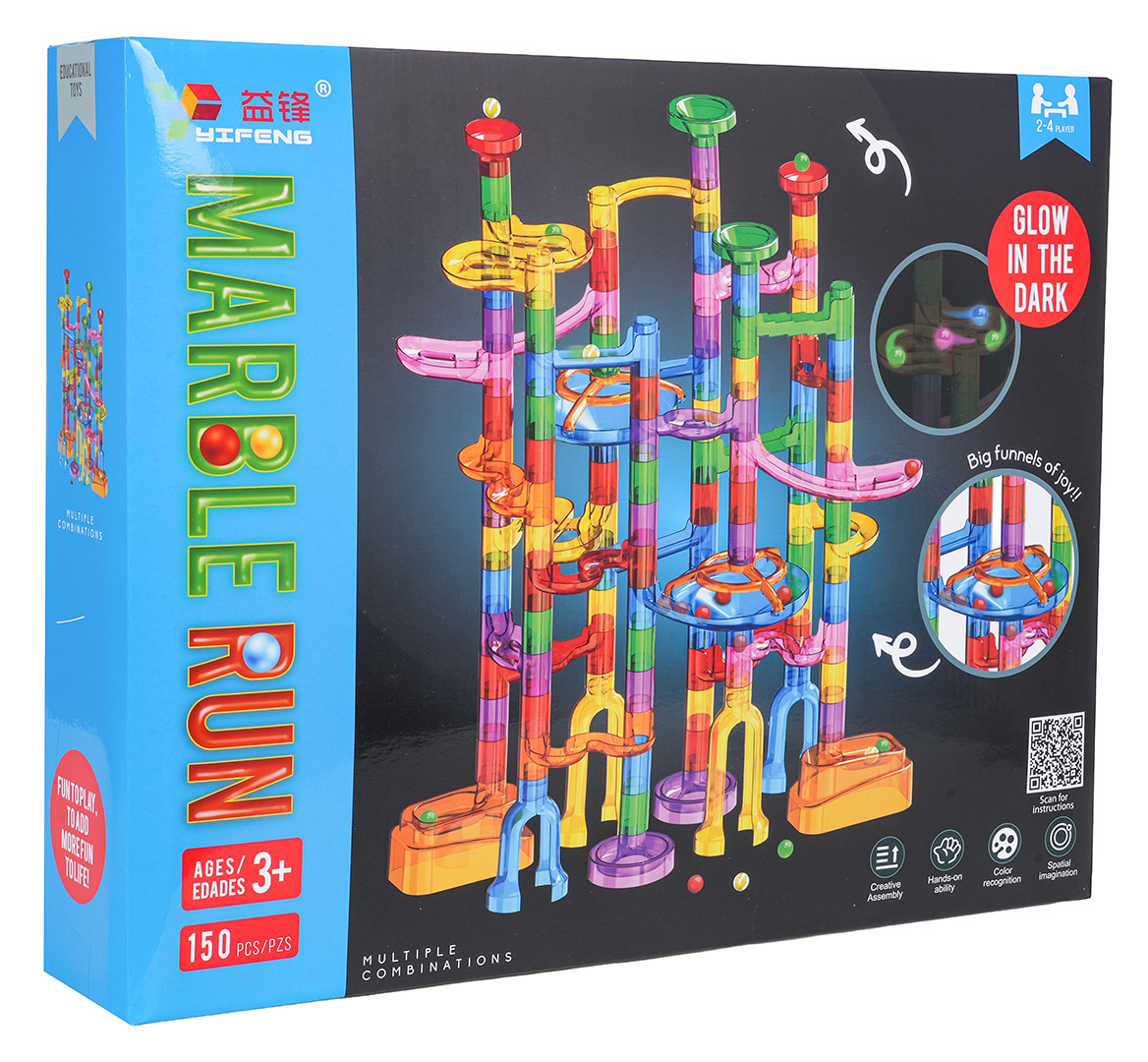 Barevná, odolná dráha k vlastní montáži se svítícími kuličkami ve tmě pro děti od tří let. Zábava spočívá ve vlastnoručním postavení konstrukce dráhy a následném pouštění míčků tunely. Pouštění kuliček do pohybu a pozorování, jak překonávají klikaté tunely, přináší spoustu radosti, uklidňuje a ztišuje. Hračka pozitivně ovlivňuje rozvoj kreativity, představivosti a manuálních dovedností.