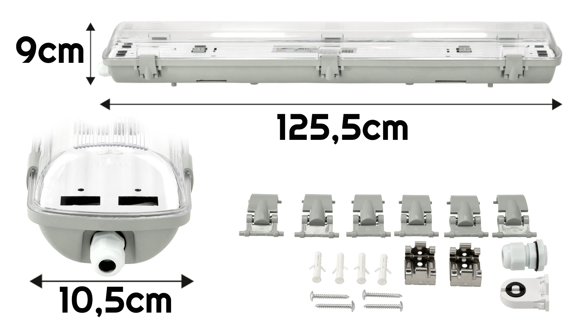 Vysoce kvalitní prachotěsné svítidlo IP65 pro 2LED trubice T8/120cm jednostranně napájené. ( náhrada T8/36W.)