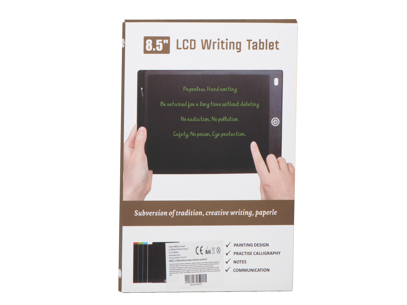 Fantastický grafický tablet pro kreslení a psaní. Má 8,5'' obrazovku a praktický stylus. Tlačítko s košíkem umožňuje psát od začátku. Ideální na cesty. Jednoduché použití. Napájení bateriemi CR2025 (v tabletu). Rozměry: 22x14x0,4 cm.Celý popis