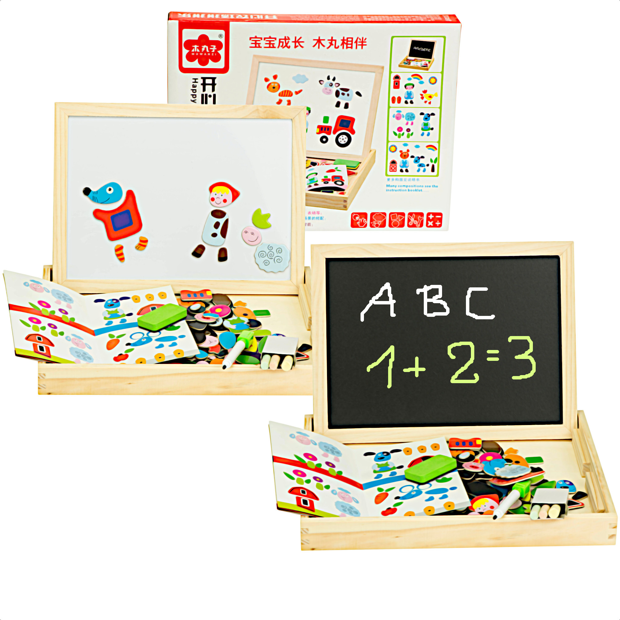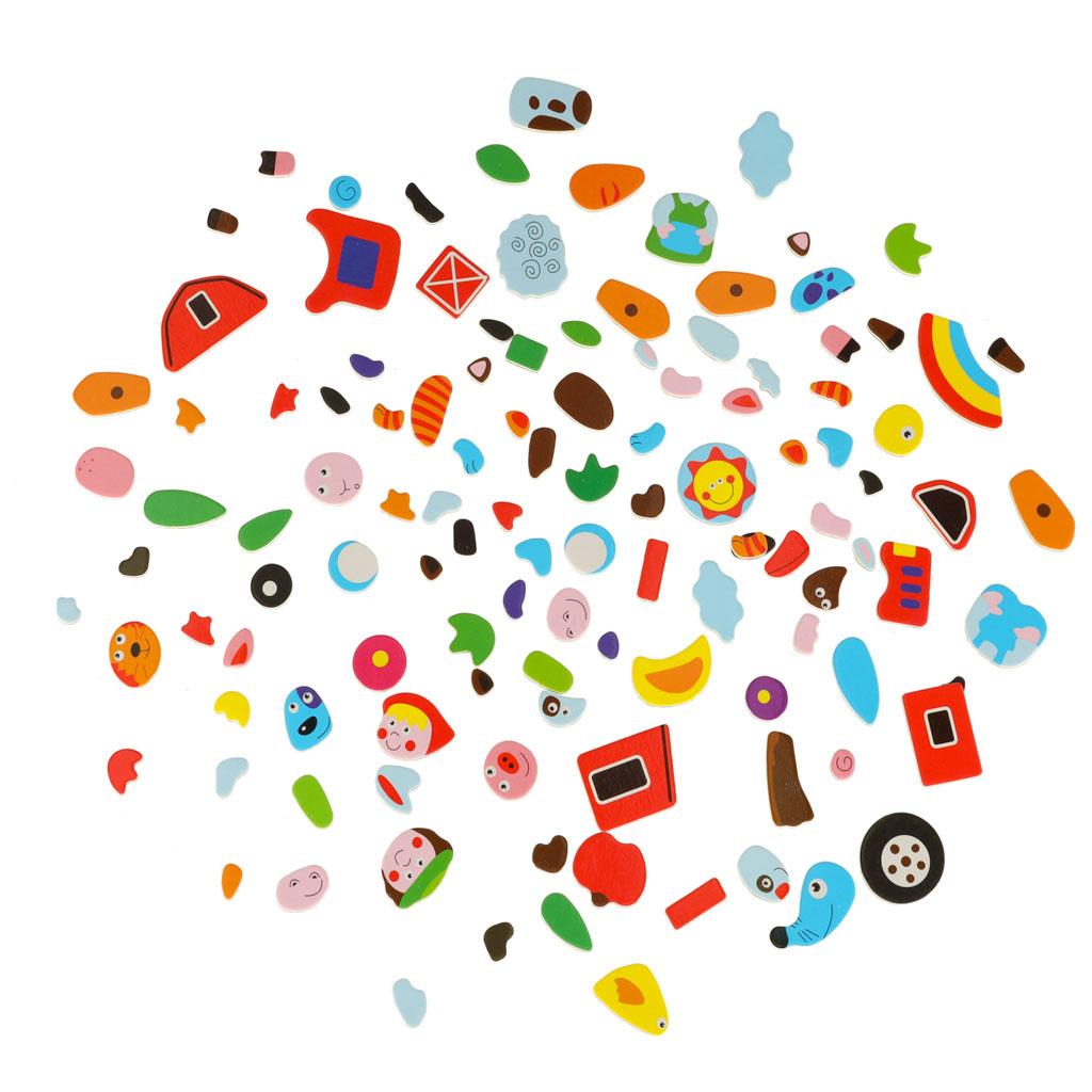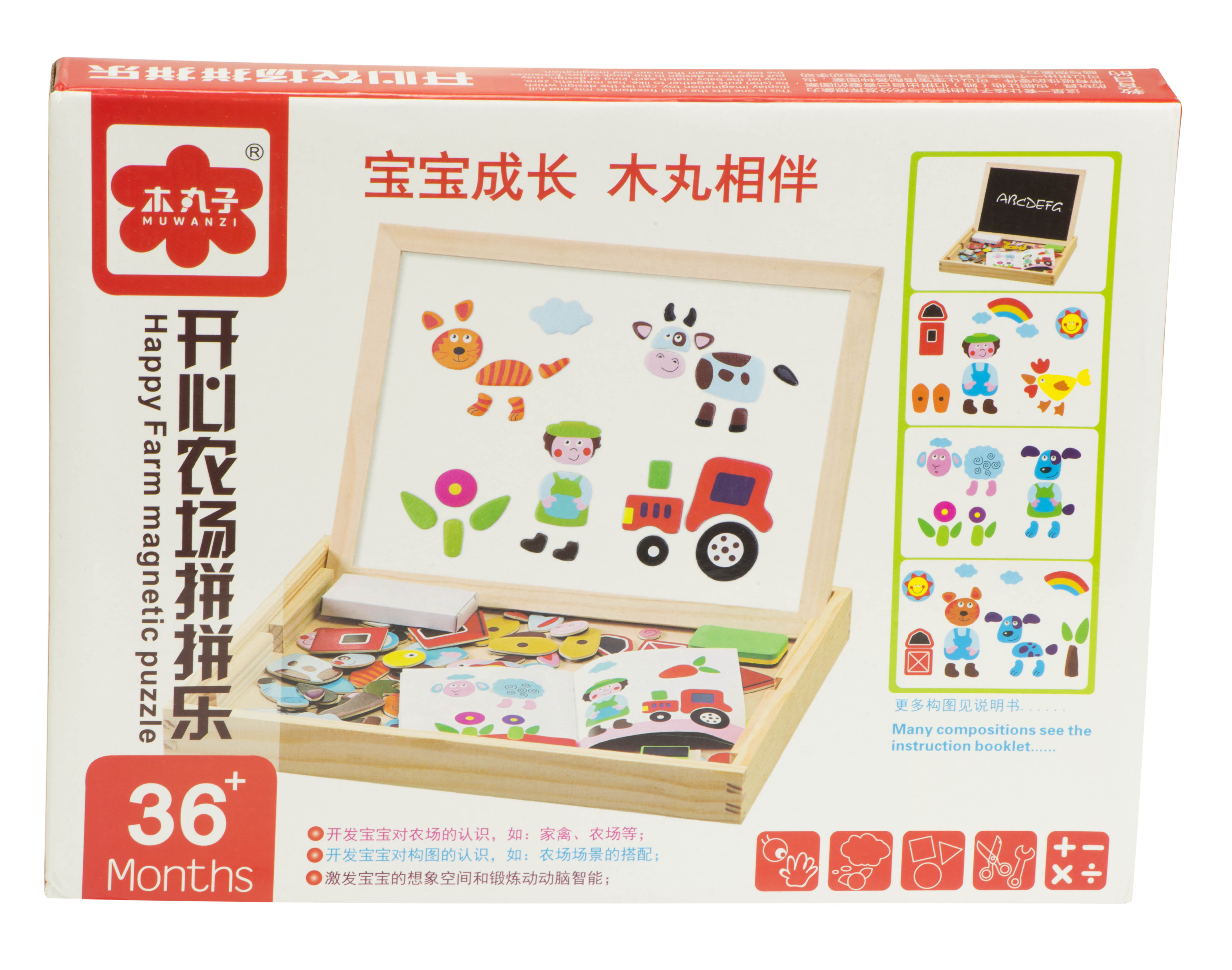 • Oboustranná dřevěná deska s magnetickými skládačkami na uspořádání obrázků.