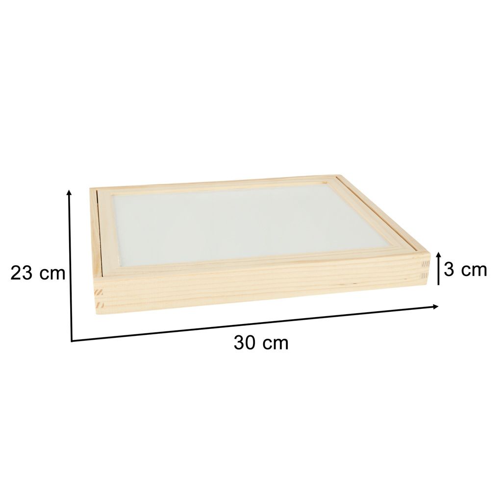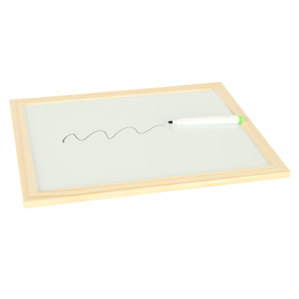 Rozměry: délka 30 cm. šířka 23 cm. 3 cm V.Dvojí funkce tabule:Bílá magnetická strana slouží k umisťování barevných skládaček a psaní fixem. Černá strana tabule se používá pro tradiční psaní křídou.Celý popis