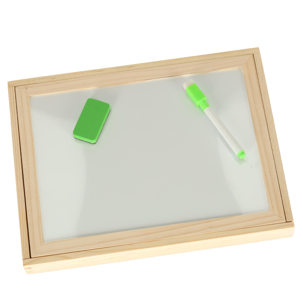 Rozměry: délka 30 cm. šířka 23 cm. 3 cm V.Bílá magnetická strana se používá pro barevné skládačky a psaní fixem -Černá strana tabule se používá pro tradiční psaní křídou