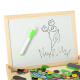 Oboustranná dřevěná deska s magnetickými skládačkami na uspořádání obrázků.