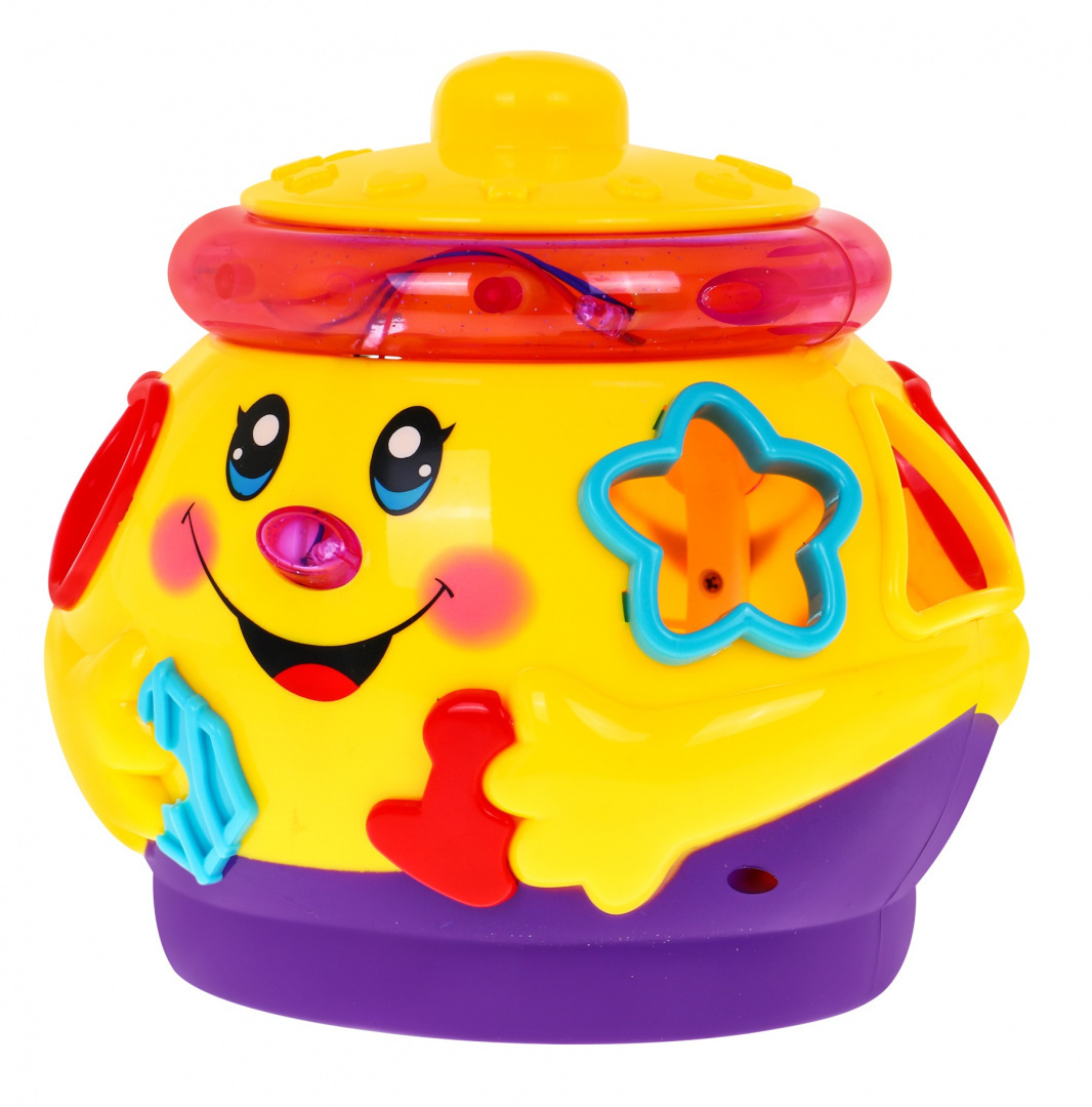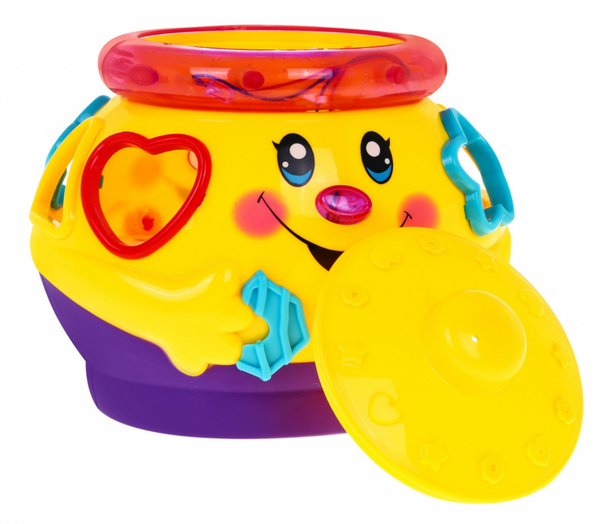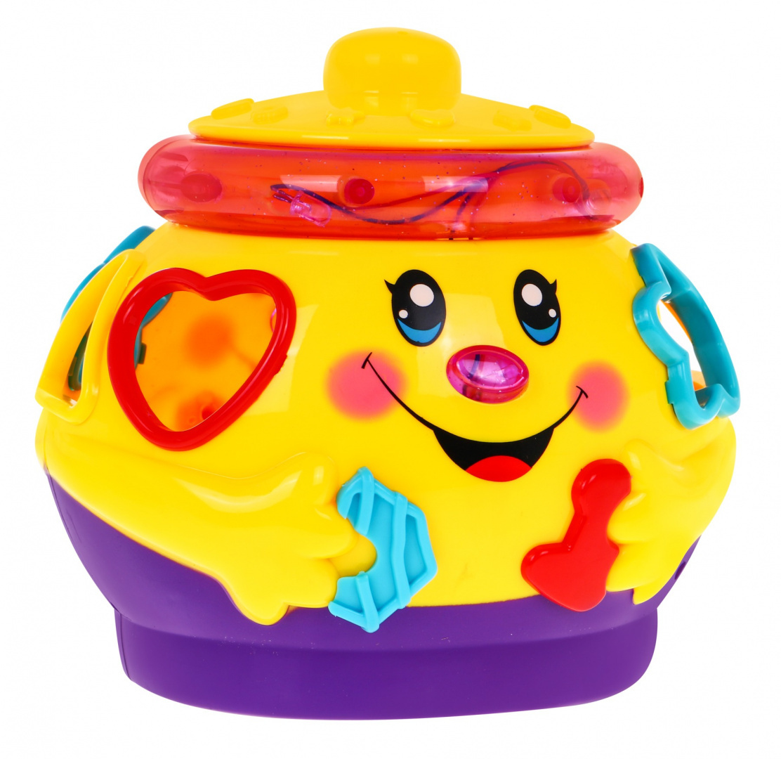 Interaktivní hračka pro děti od tří let. Sada se skládá z květináče a šesti různobarevných kostek, jejichž tvary lze přiřadit k otvorům ve stěnách květináče.