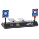 - Na terč lze střílet pěnovými šípy. Hra je vybavena světelnými a zvukovými efekty, které ji dělají zajímavější. Po zásahu se ozve zvuk tříštícího se skla nebo potlesk. Kromě toho je na terči umístěno dvoumístné počítadlo bodů. Každý cíl se po zásahu položí zpět.