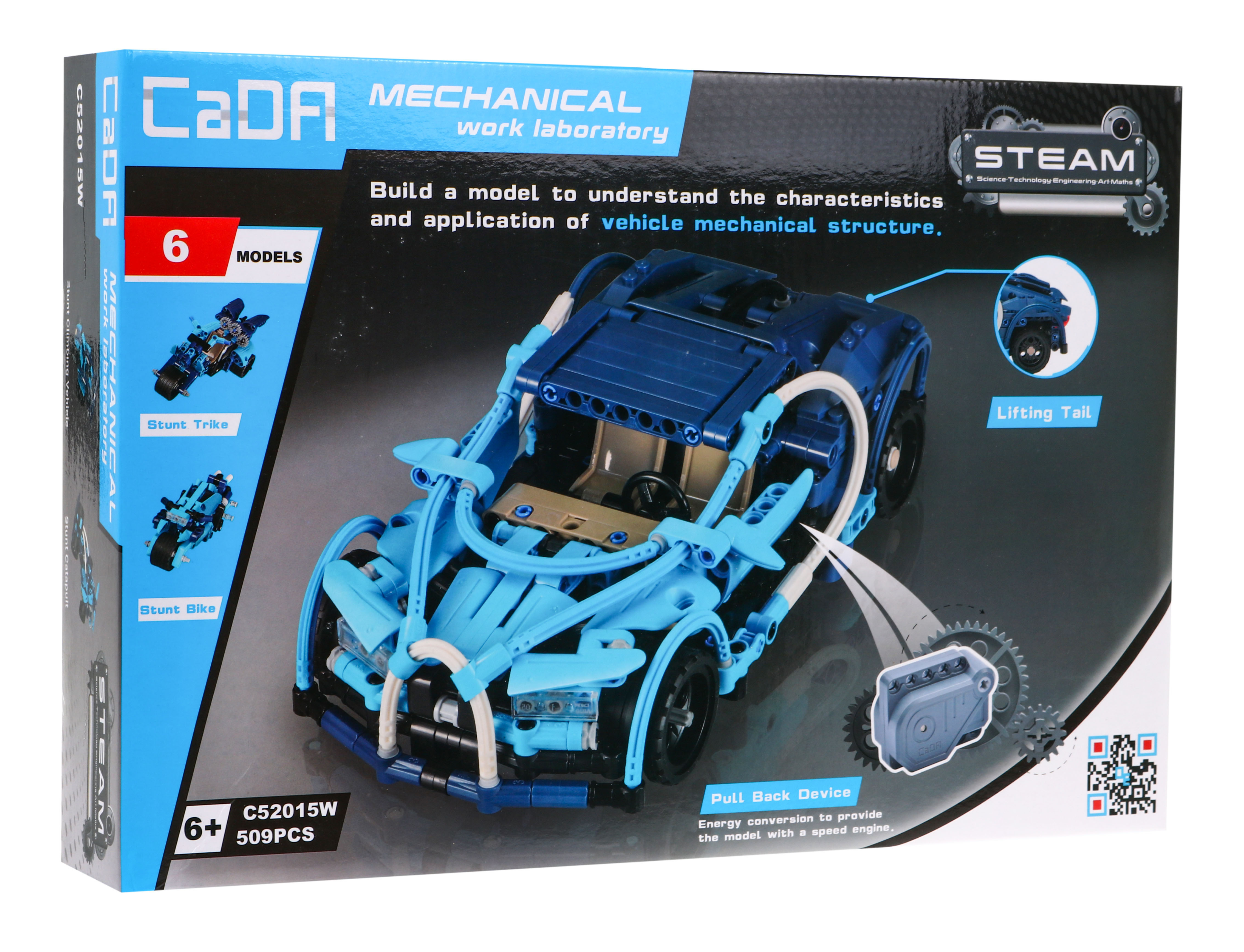 Vysoce kvalitní stavební kostky pro děti od šesti let. Sada se skládá z 509 dílků, ze kterých lze sestavit 6 různých modelů kaskadérských vozidel. Vozidla jsou vybavena gumovými pneumatikami a zvládnou jakýkoli terén.