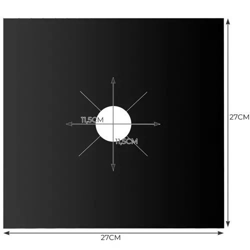 SPECIFIKACE -Černá barva; materiál: teflon; průměr otvoru: 4,5 cm - 11,5 cm; rozměry: 27 x 27 x 0,2 cm; hmotnost: 90 g; hmotnost v balení: 100g.