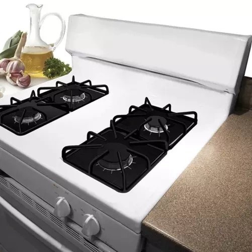OTVOR PRO HOŘÁK- v podložce je vyříznut otvor pro hořák, díky kterému jej snadno vložíme pod plynový hořák. Stačí sundat planik, položit podložku a nainstalovat hořák.Instalovaná podložka ochrání vaše kamna před nečistotami, zabarvením, připálením, přilepením a vysokou teplotou .