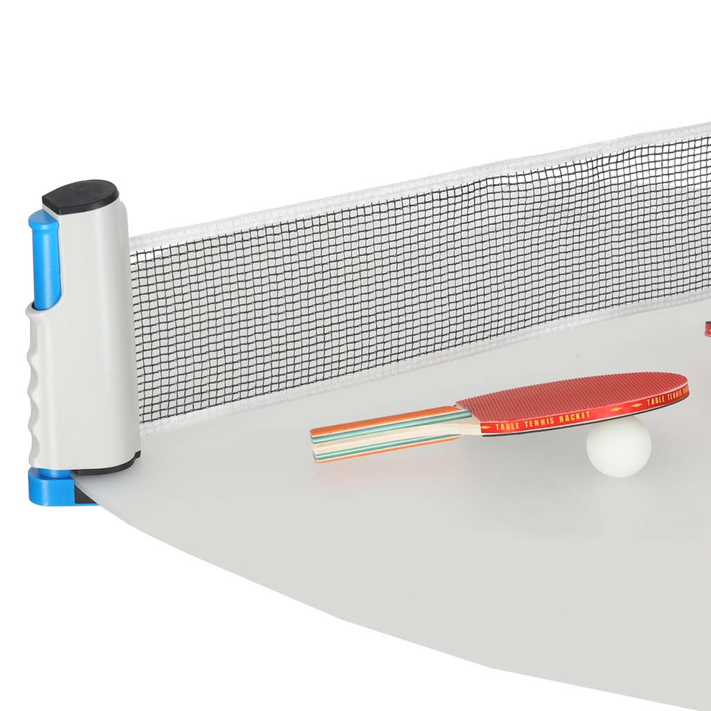 Stolní tenis je hra pro všechny od 5 do 100 let. Sadu na stolní tenis lze snadno sestavit. Prakticky na každý stůl montujeme síťku a díky raketám a míčkům můžete ihned začít hrát vzrušující hry. Rakety jsou určeny pro rekreační hru, použitá guma zajišťuje rychlost a velmi dobrou kontrolu .Síť je po instalaci dobře napnutá a po skončení hry ji lze velmi rychle složit.