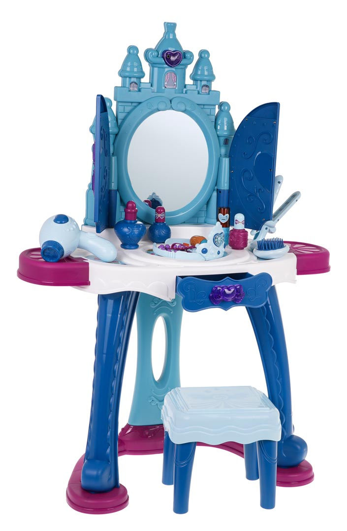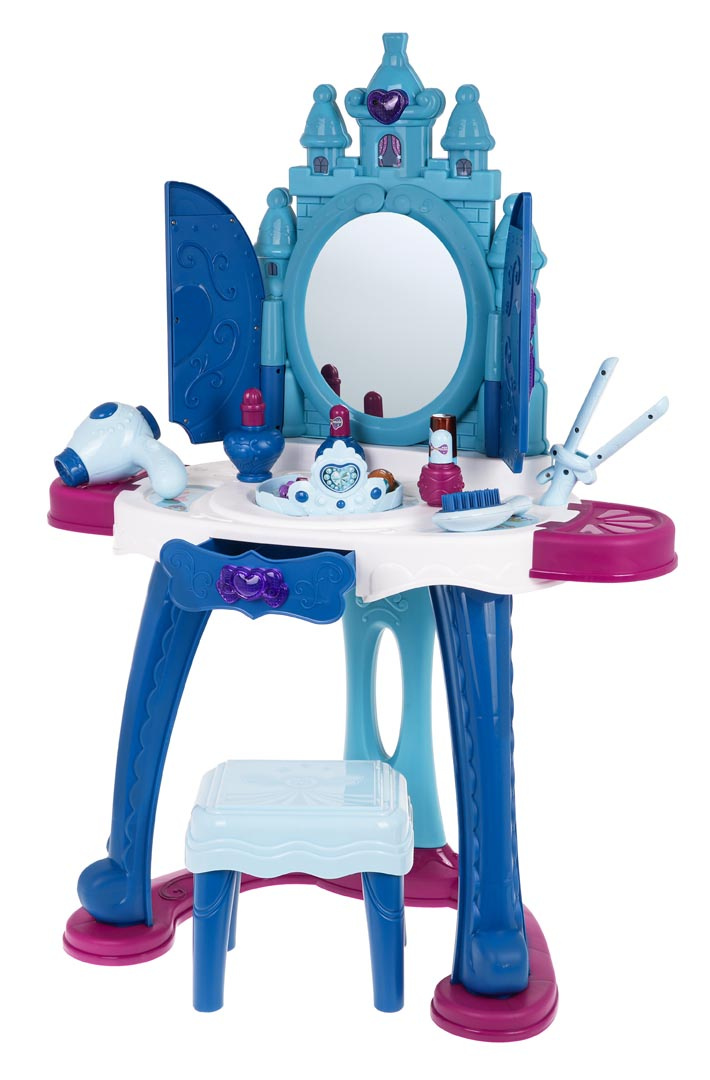 Darujte své malé princezně nádherný dárek: toaletní stolek se světelnými a zvukovými funkcemi, který ji přenese do pohádkového světa kouzel a krásy. Tento barevný toaletní stolek, vyrobený z nejkvalitnějšího plastu, je ideální pro děti od 3 let. Sada je bohatě vybavena řadou doplňků, které děti zabaví na celé hodiny.