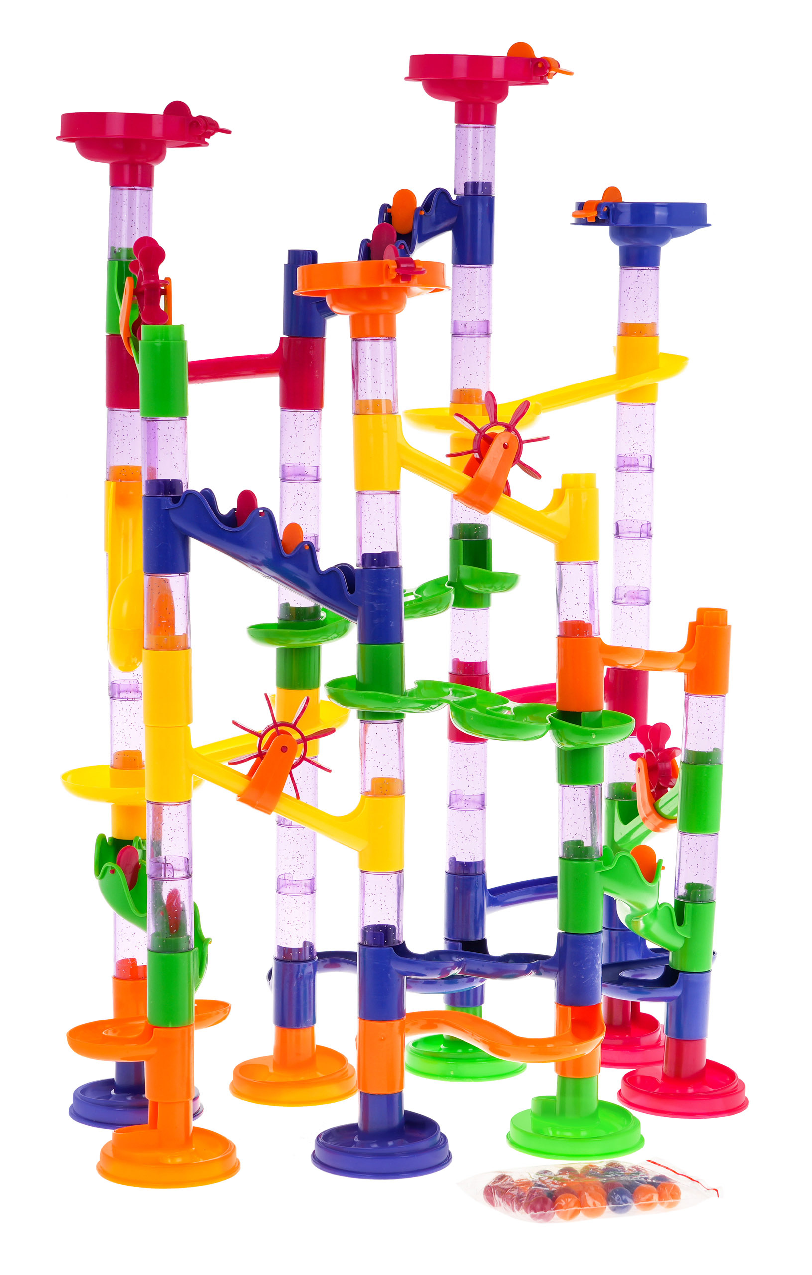 Mega barevná, robustní, skvěle zpracovaná dráha s kuličkami je vhodná pro děti již od 3 let, ale jistě nadchne i starší děti. Hra spočívá v tom, že si sami postavíte dráhu a pak necháte kuličky projíždět tunely. Můžete postupovat podle obrázkového návodu, který je součástí sady, nebo si vytvořit vlastní věž. Pouštět míčky a sledovat, jak projíždějí klikatými tunely, je velmi zábavné, uklidňující a uklidňující. Hračka pozitivně ovlivňuje rozvoj kreativity, představivosti a manuální zručnosti.