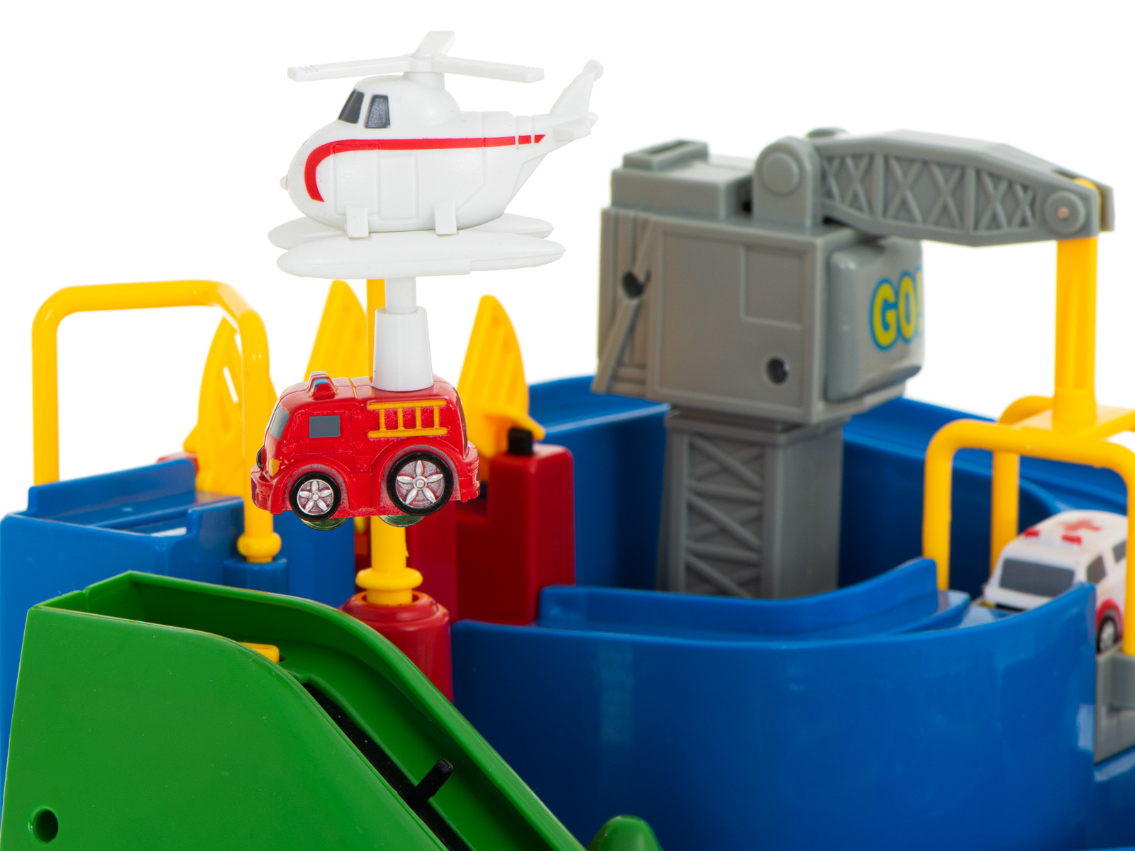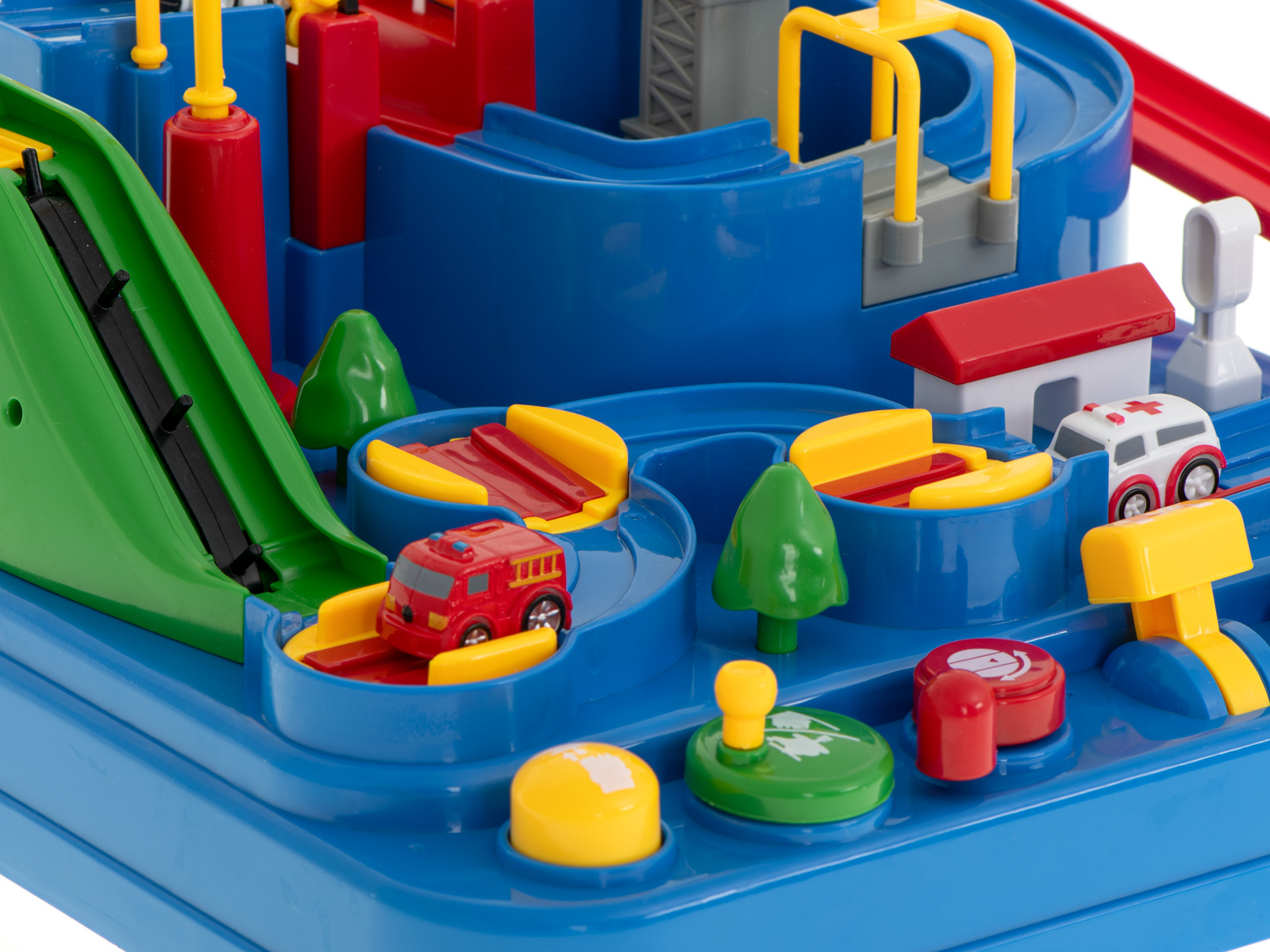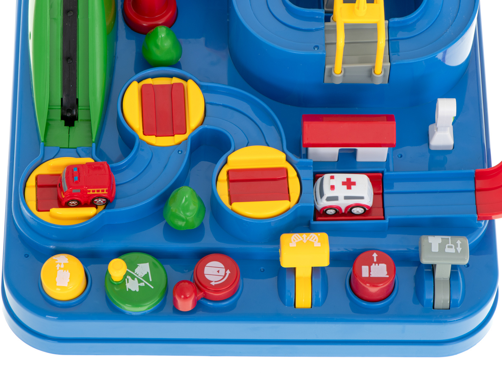 Multifunkční autodráha bude pro malé dobrodruhy opravdovým zážitkem. Tlačítka a knoflíky musí být správně ovládány, aby byla celá skladba dokončena. Zdá se to jako snadný úkol? Jsou to jen zdání. Podívejte se na to sami a zjistěte to. Na trati na vás čekají četné překážky v podobě ozubených kol nebo padacího mostu. Postavte se všem tváří v tvář a zajistěte, aby záchranná služba dorazila včas.
