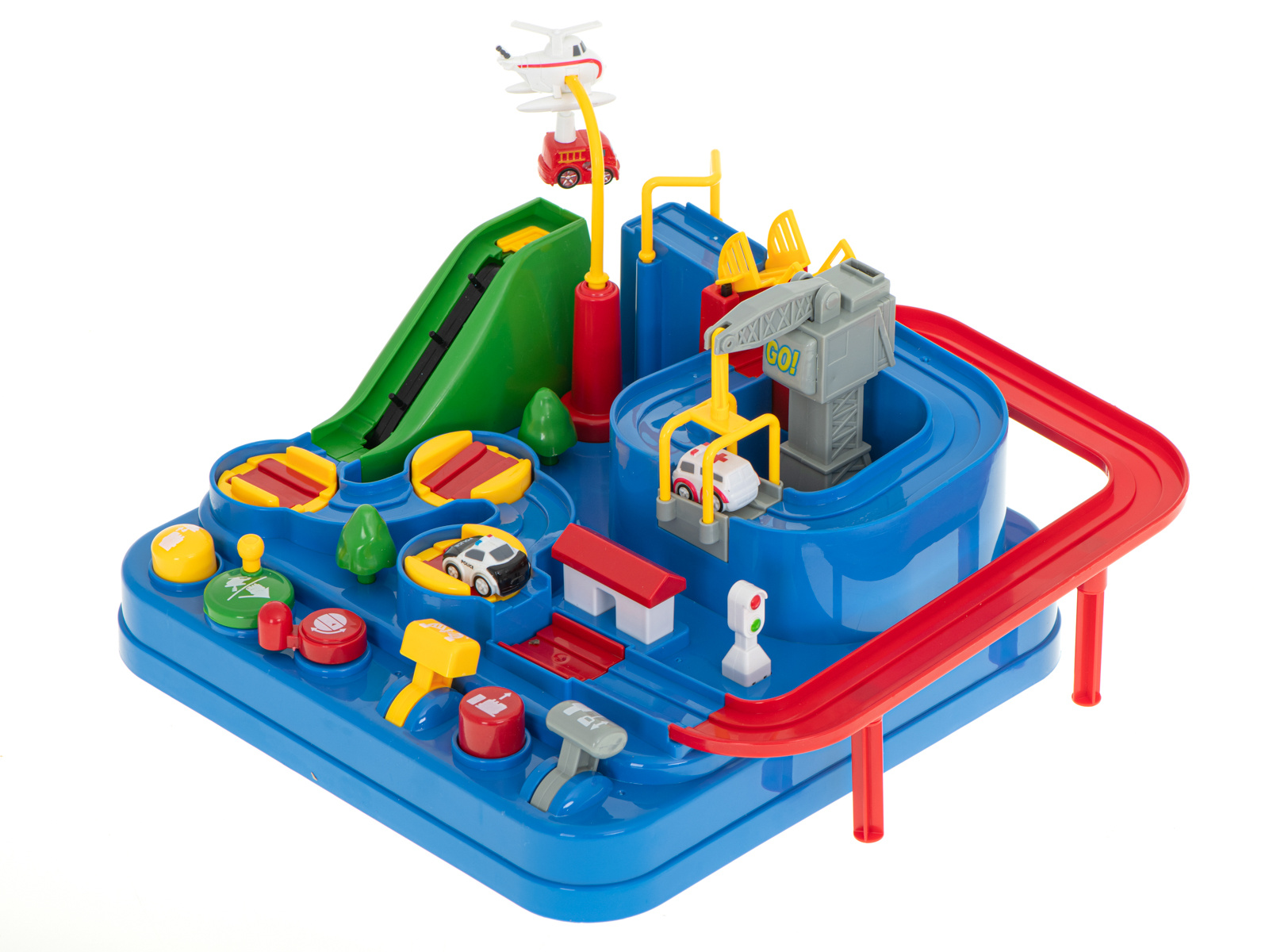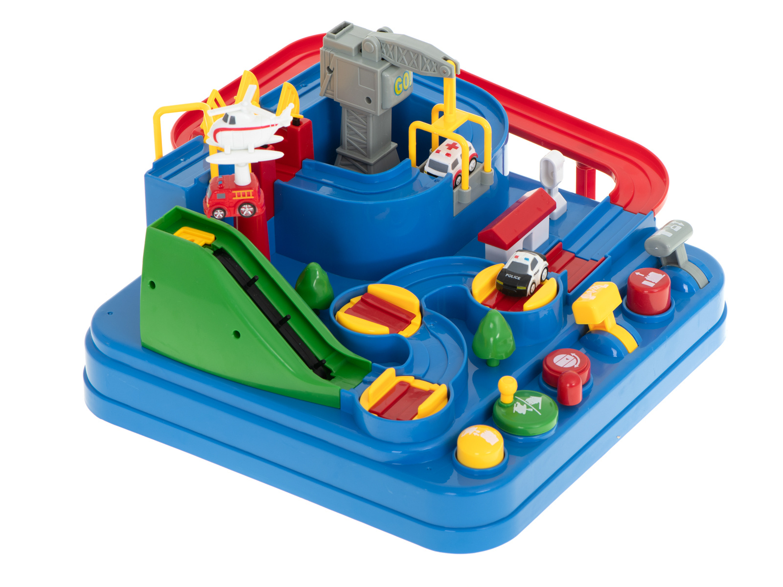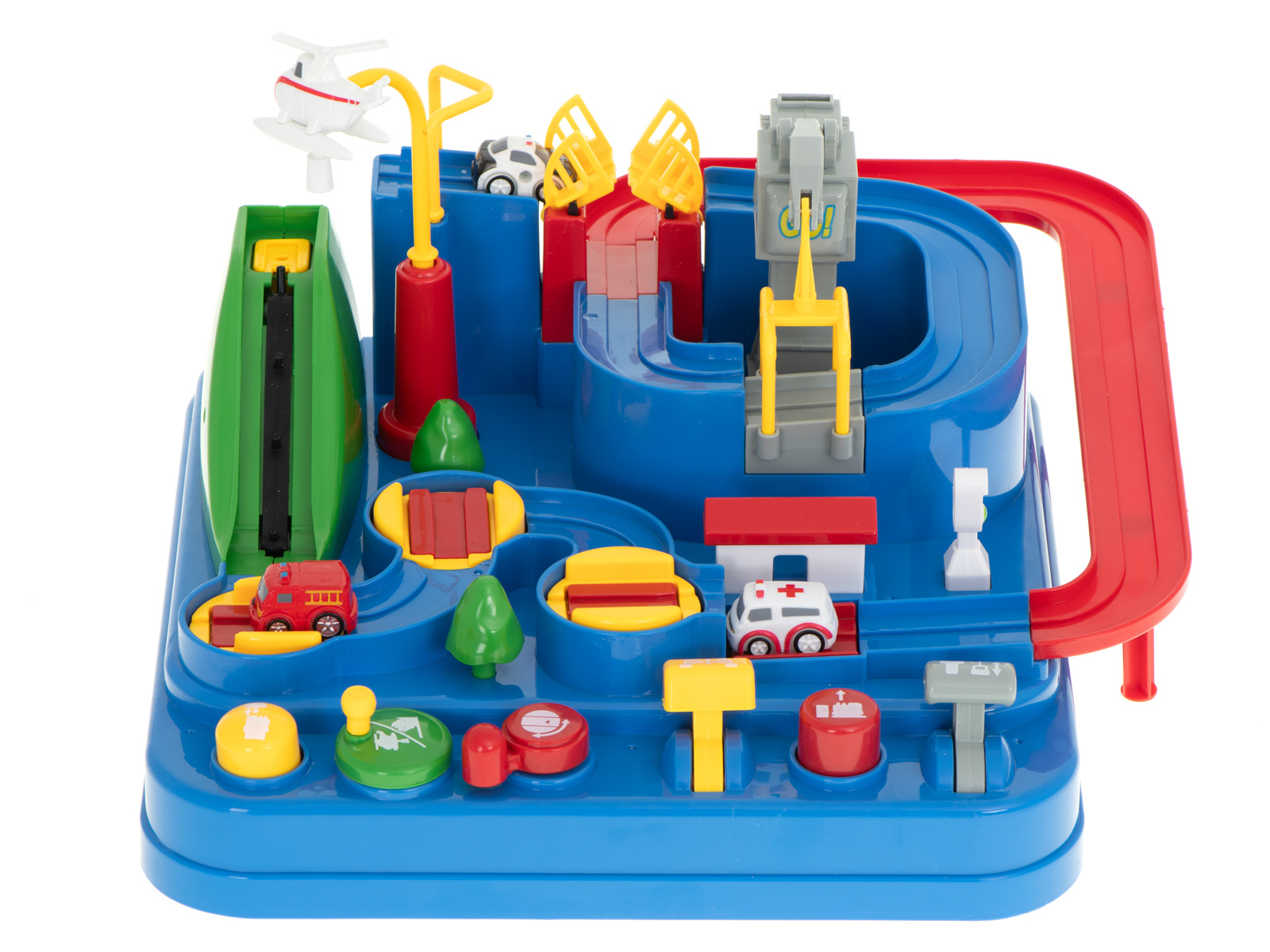 Multifunkční autodráha bude pro malé dobrodruhy opravdovým zážitkem. Tlačítka a knoflíky musí být správně ovládány, aby byla celá skladba dokončena. Zdá se to jako snadný úkol? Jsou to jen zdání. Podívejte se na to sami a zjistěte to. Na trati na vás čekají četné překážky v podobě ozubených kol nebo padacího mostu. Postavte se všem tváří v tvář a zajistěte, aby záchranná služba dorazila včas.