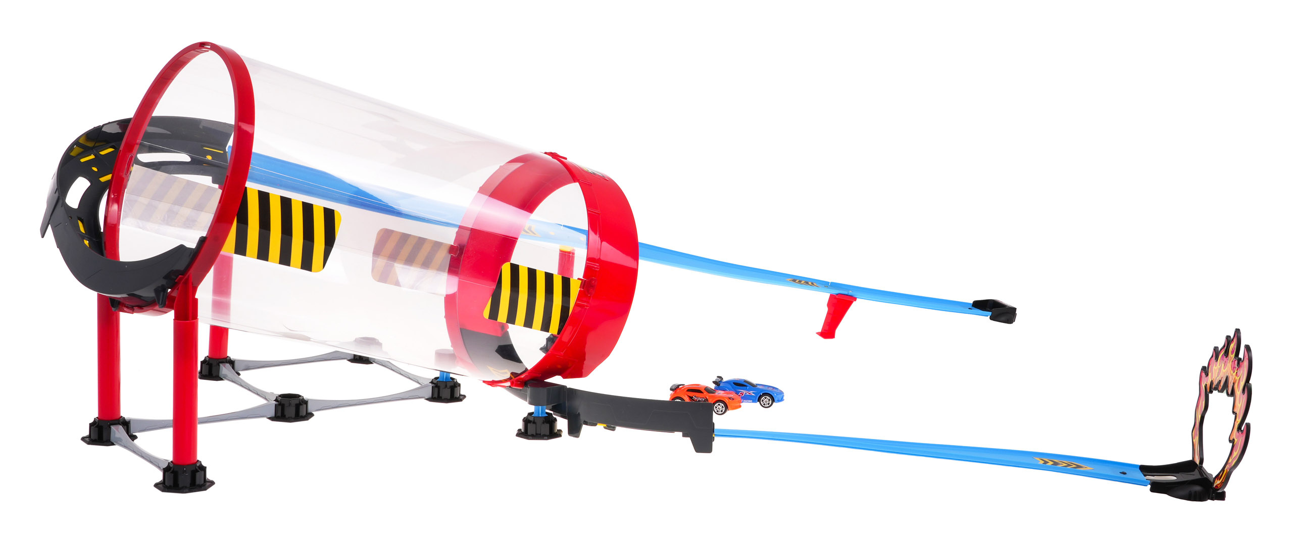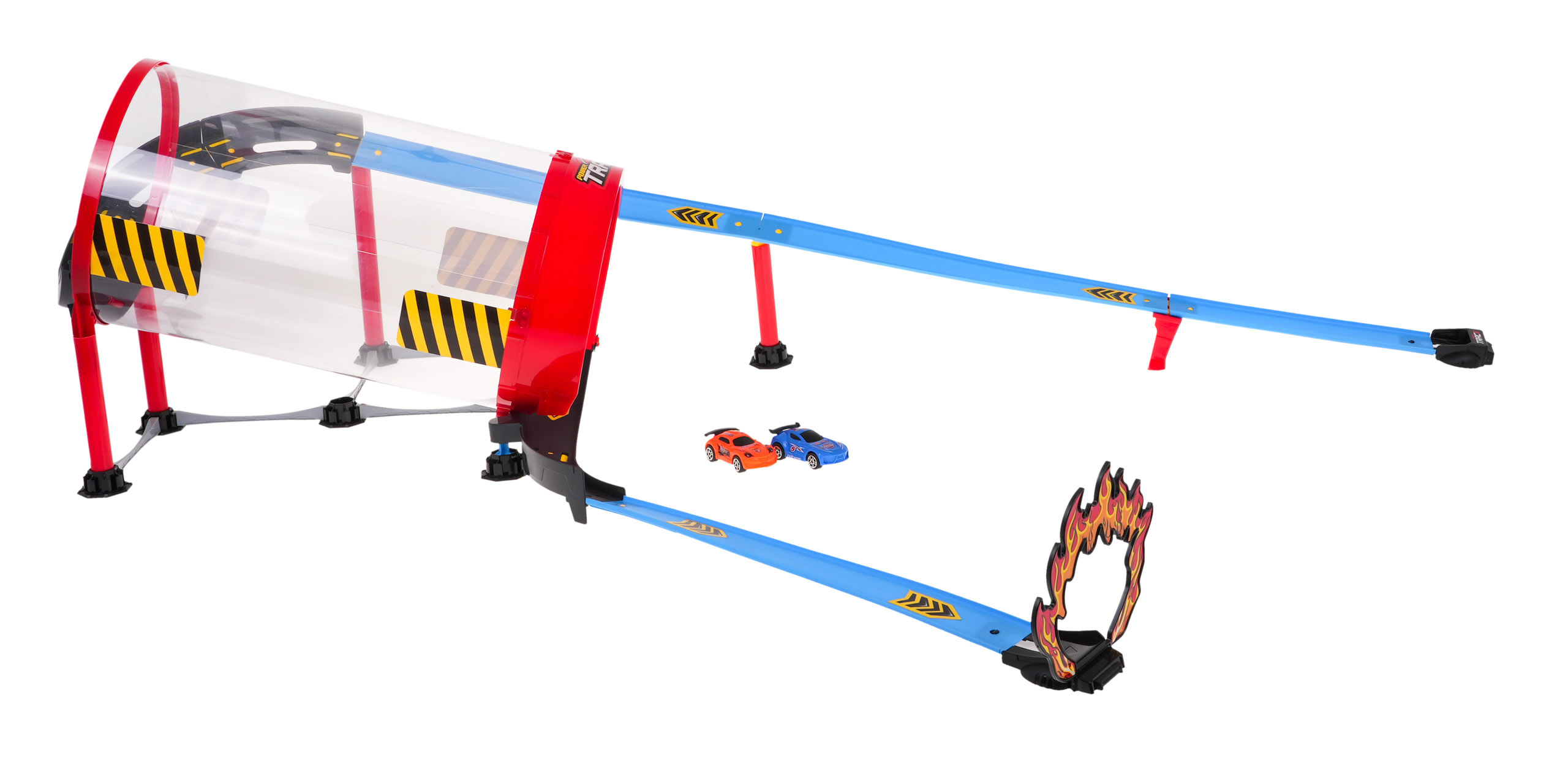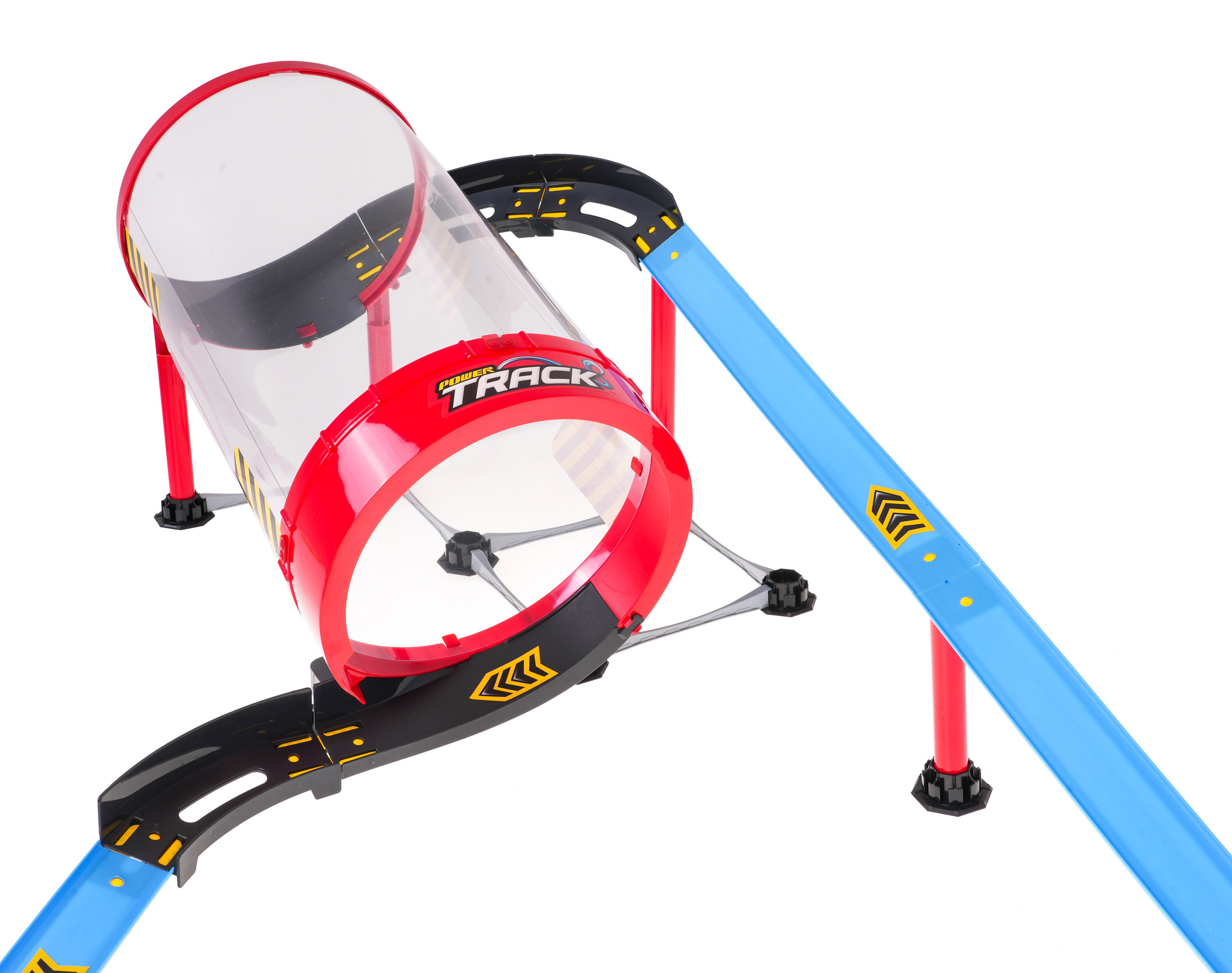 Fantastická závodní dráha s trubkou a dvěma autíčky v balení je vhodná pro děti od 3 let. Sada se skládá z 57 dílků kolejí pro vlastní sestavení. Autíčka, která jsou součástí sady, nepotřebují žádné baterie a mají pohon pull-back, stačí je jemně zatáhnout dozadu a projet vysokou rychlostí po dráze, překonat široký sud a proskočit obručí na konci dráhy. Dráhu lze kombinovat s dalšími sadami z této série.