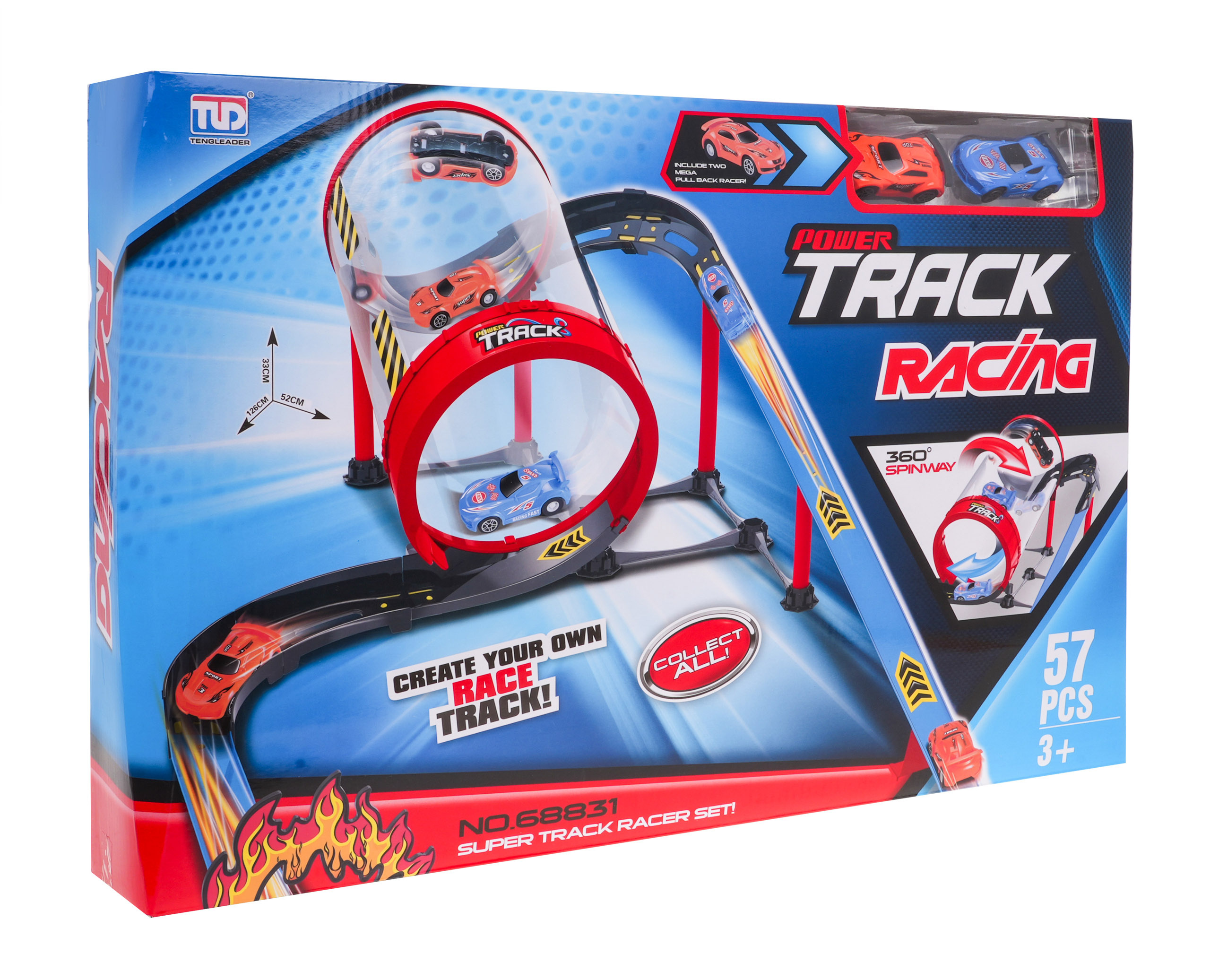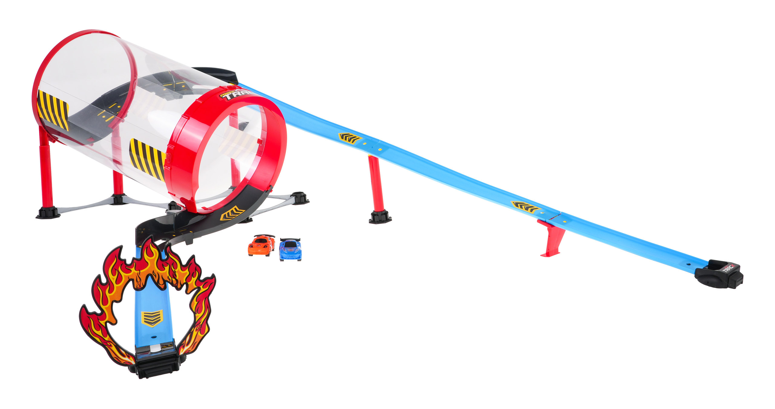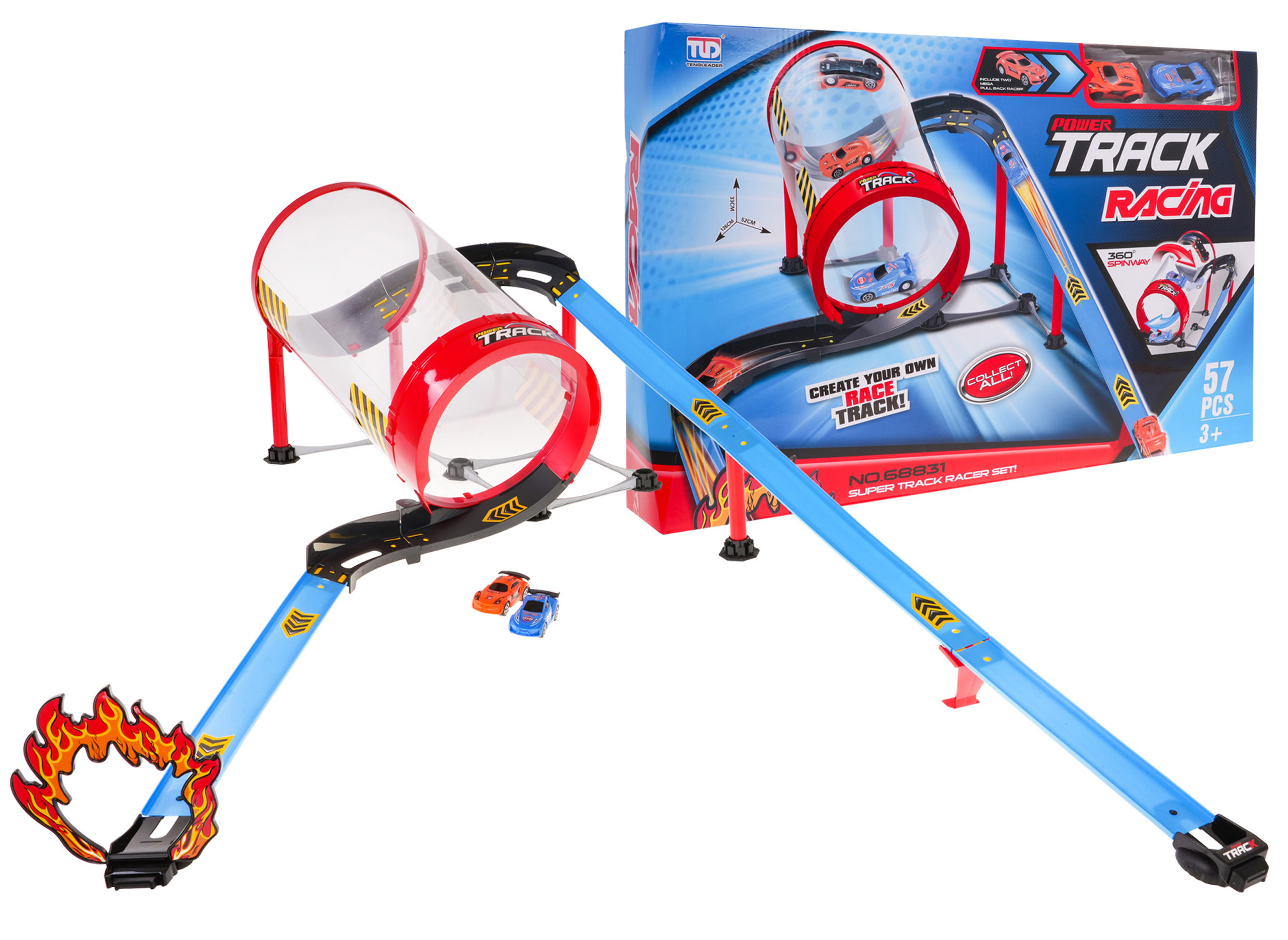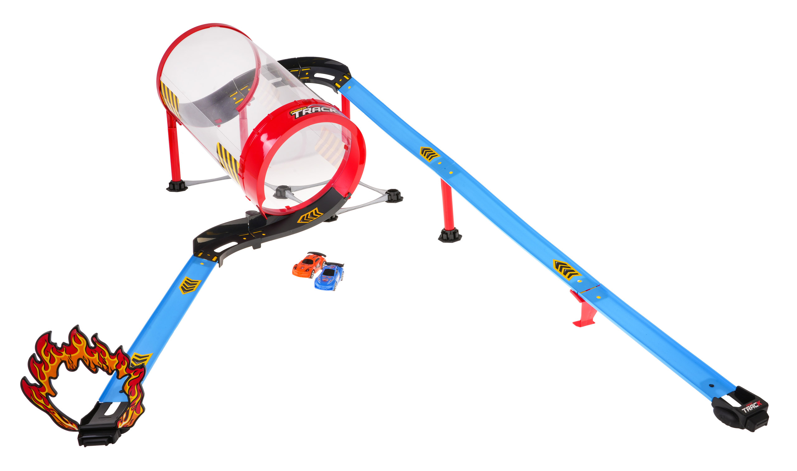 Fantastická závodní dráha s trubkou a dvěma autíčky v balení je vhodná pro děti od 3 let. Sada se skládá z 57 dílků kolejí pro vlastní sestavení. Autíčka, která jsou součástí sady, nepotřebují žádné baterie a mají pohon pull-back, stačí je jemně zatáhnout dozadu a projet vysokou rychlostí po dráze, překonat široký sud a proskočit obručí na konci dráhy. Dráhu lze kombinovat s dalšími sadami z této série.