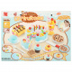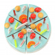 Dort se skládá ze 6 kusů. Dítě může dort "nakrájet" plastovým nožem, který je součástí sady. Kousky dorty jsou spojeny dohromady pomocí suchého zipu.