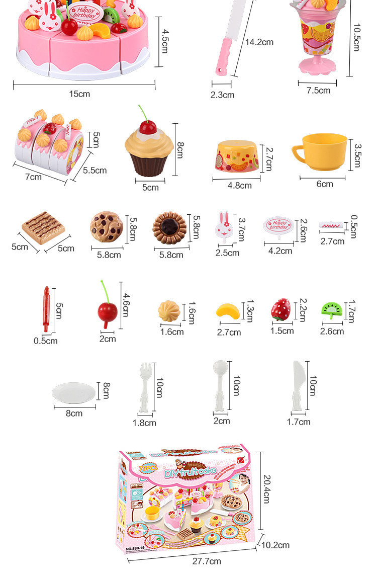 Dítě může podle své vlastní představivosti přidat dortové svíčky a jiné dekorace ze sady, takže zábava nikdy nekončí. Je to ideální hračka pro vývoj manuálních dovedností dítěte.