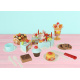 Cukrářská hrací souprava. Komponenty jsou vyrobeny z plastu ABS. Dort má otvory, takže ho můžete libovolně zdobit pamlsky, které do něj můžete zapíchnout. Kousky těsta se přilepí na suchý zip. Rozměry dortu: 15x4,5 cm.Celý popis