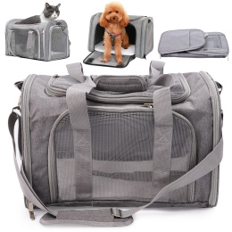 Transportér vyrobený z lehkého, ale odolného materiálu, snadno čistitelný. Má nastavitelný pásek, pohodlné úchyty a měkký polštář uvnitř. Možnost otevírání shora a z boku usnadňuje vkládání a vyjímání zvířete.Kratky větrací otvory zajišťují čerstvý vzduch a boční kapsa praktické uložení příslušenství.Dobra ventilace - každé z oken má hustou, zesílenou vinylovou síťku na zip, která zajišťuje přístup čerstvého vzduchu a viditelnost Pelíšek vyrobený z měkkého materiálu Nastavitelný ramenní popruh Vnitřní bezpečnostní vodítko Skládací a lehká - pokud tašku nepotřebujete, můžete ji složit naplocho, takže nezabírá mnoho místa