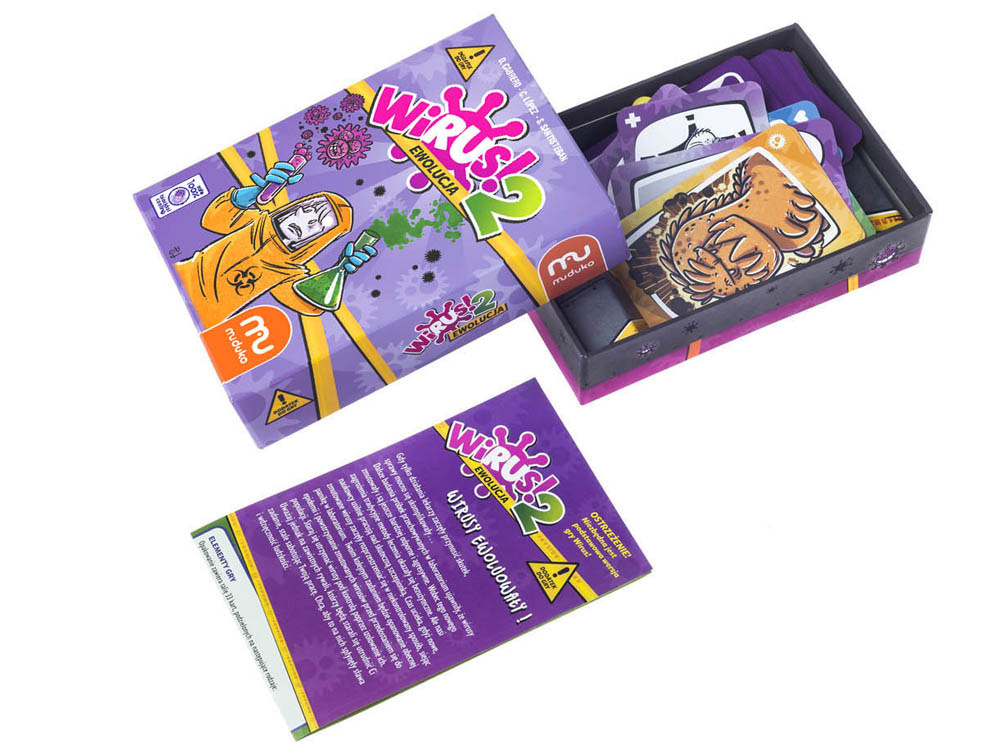 Virus 2 Evolution je přídavek k základní hře Virus. ve hře o viry jde především o zastavení epidemie, což není snadné, jak už všichni vědí. Evoluce umožňuje rozšířit opatření pro kontrolu epidemie a přesunout viry do karantény. Protože tradiční metody léčby se ukázaly jako neúčinné. Vývoj viru umožňuje používat nové karty, nová pravidla. Hra je poutavá a vyžaduje, aby hráč (vědec) používal chytrost a inteligenci, doslova jako ve skutečném životě.