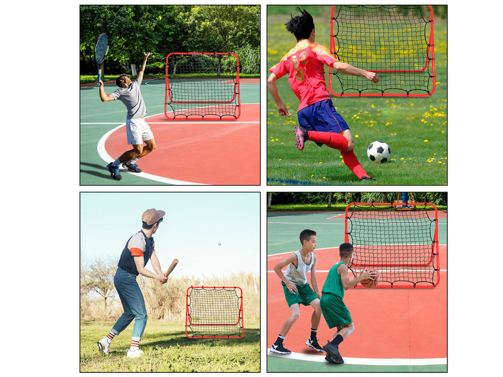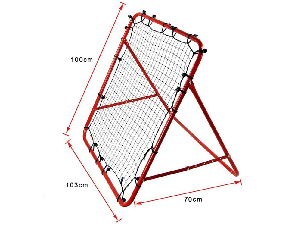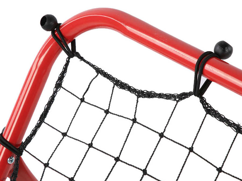Rám odrážedla je vyroben z oceli a je lakován v intenzivní červené barvě. Hrubá nylonová síťovina vydrží opakované nárazy míče. Součástí balení jsou čtyři kolíky, které zaručují stabilitu konstrukce. Rám má čtyřstupňové nastavení hloubky, a tedy i čistý náklon. Součástí branky je 20 elastických popruhů, které zajišťují správné napnutí sítě pro efektivní a pohodlný trénink.